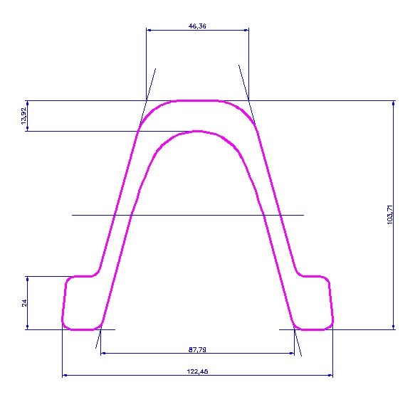 Jen tak v rychlosti jsem se pokusil v AutoCADu obkreslit ten profil dle obrázku a vyšlo mě tohle: S nějakými úpravami by to celkem vycházelo. Ale ani po úpravách rozměrů bych si netroufl tvrdit, že vypálený kus půjde nasadit na ten profil a to hlavně kvůli těm radiusům, které jsou tak nějak od ruky "omalovány" z obrázků. Zkus se poptat u výrobce, zdali by Ti neposkytl výkres průřezu profilu v DWG formátu. Zkus na ně udělat smutný oči, možná by Ti mohli pomoci i když si myslím, že úspěšnost moc velká nebude.