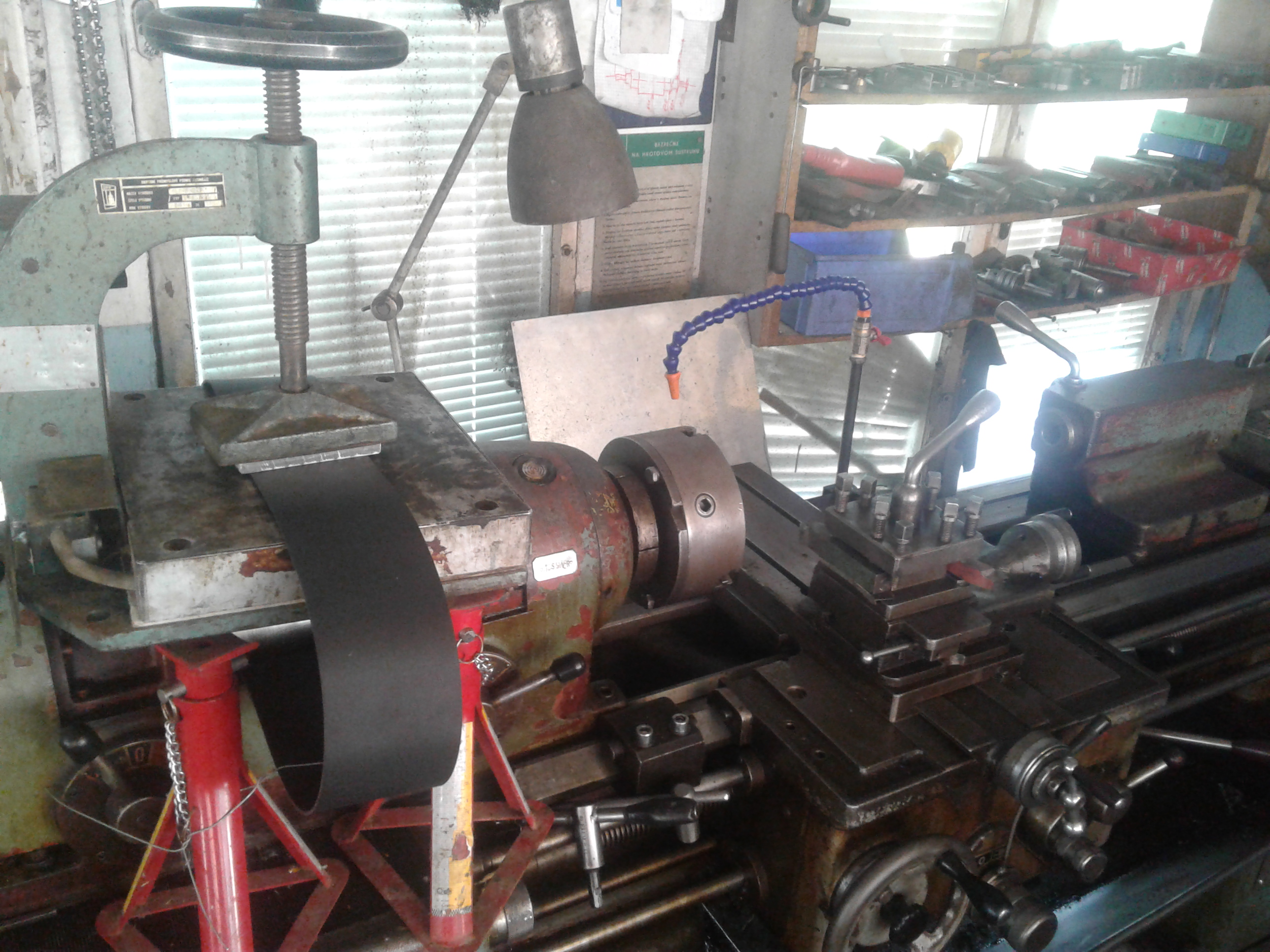 Sústruh som kúpil so sponkovaným remeňom. Ten klepot ma ale nebavilo počúvať tak som oslovil firmu Reko. Tá ma presmerovala na Slovenského dodávateľa. V piatok som remeň objednal a pondelok lepil. Telefonická konzultácia výborná. Vulkanizačný lis som si požičal z bývalého miestneho JRD.