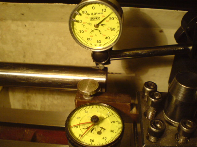 Důležité zjištění pro mne je, že příruba a kužel MK3 vřetena běží v tisícině, což mne velmi potěšilo a naplnilo optimismem. O zbytku stroje se to už říct nedá.