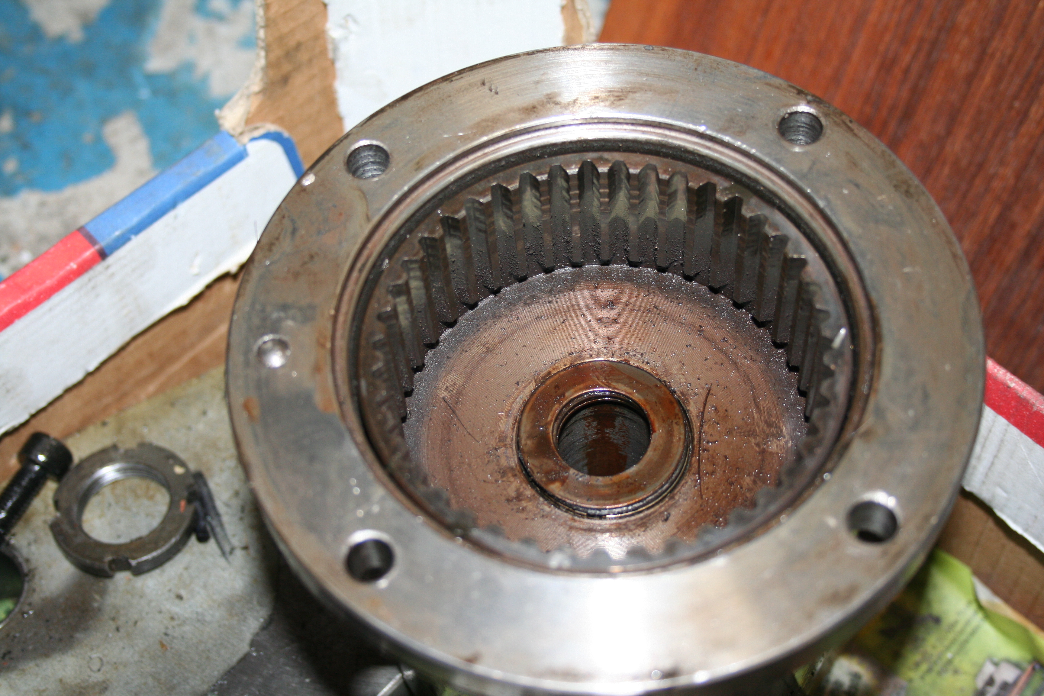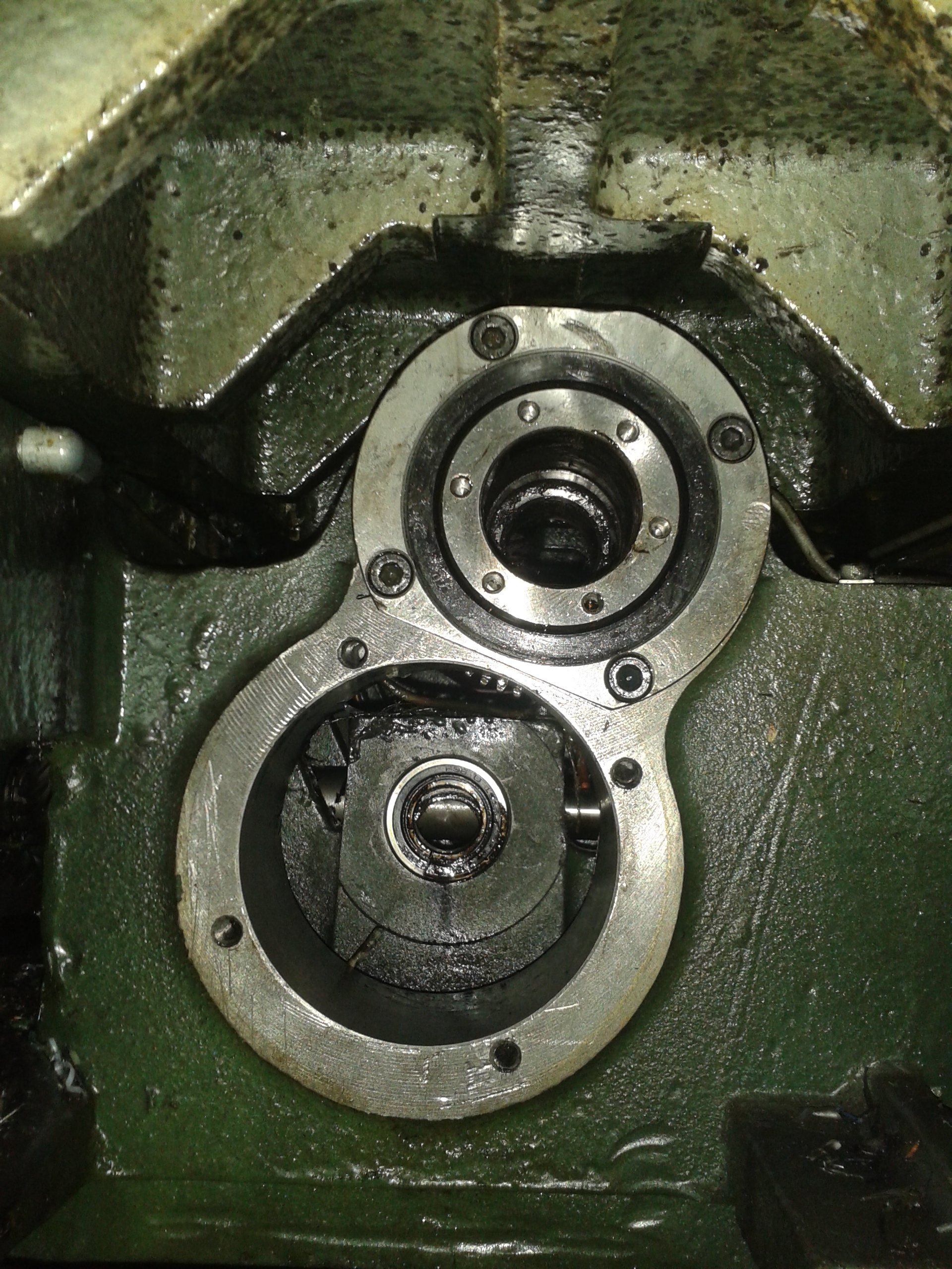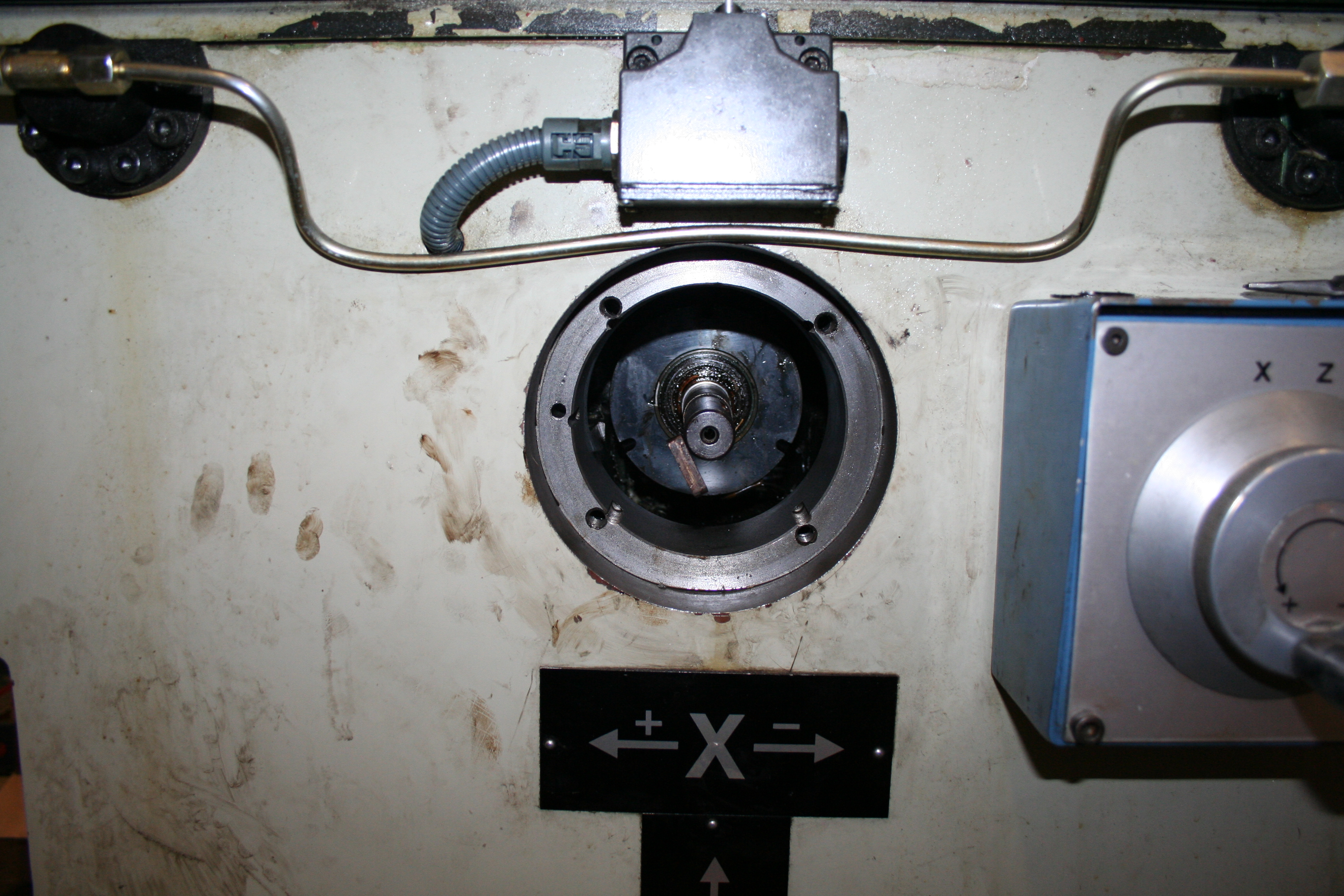 povedlo se mi konečně vyndat hlavní pohonnou osu na které byla el. mag. spojka pro přispojkování X pousu a Z posuvu. Ted musím dořešit řemenici pro rotační matici X a asi se bude nakonec frézovat. Uvažuju s převodem 1:3 stoupání šroubu je 4 nebo 5 už nevím. Raději bych víc ale vede se tam maximálně řemenice i s řemenem o průměru 125mm. Oproti dokumentci bylo jedno šikmé kolo zajištěno na drážkované hřídeli místo segerovkou imbusovým šroubem. Chvíli mi trvalo než jsem na to přišel a to díky tomu že jsem tam strčil telefon a udělal si video jak to tam vypadá ( je tam díra akorát na prostrčení ruky) . Nakonec jsem musel zkráti imb. klíč protože ta hlava byla od další hřídele jen 9 mm a nedalo se k ni dostat.