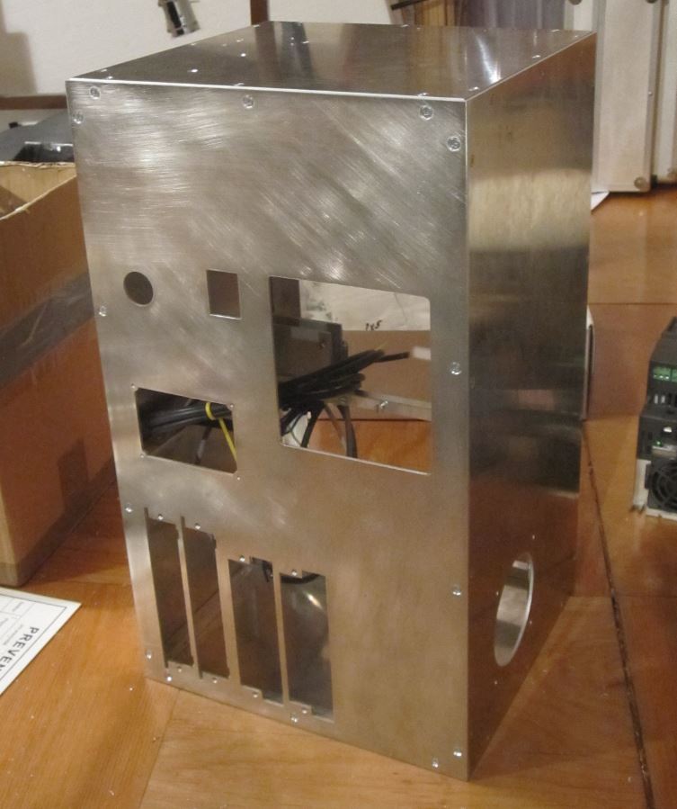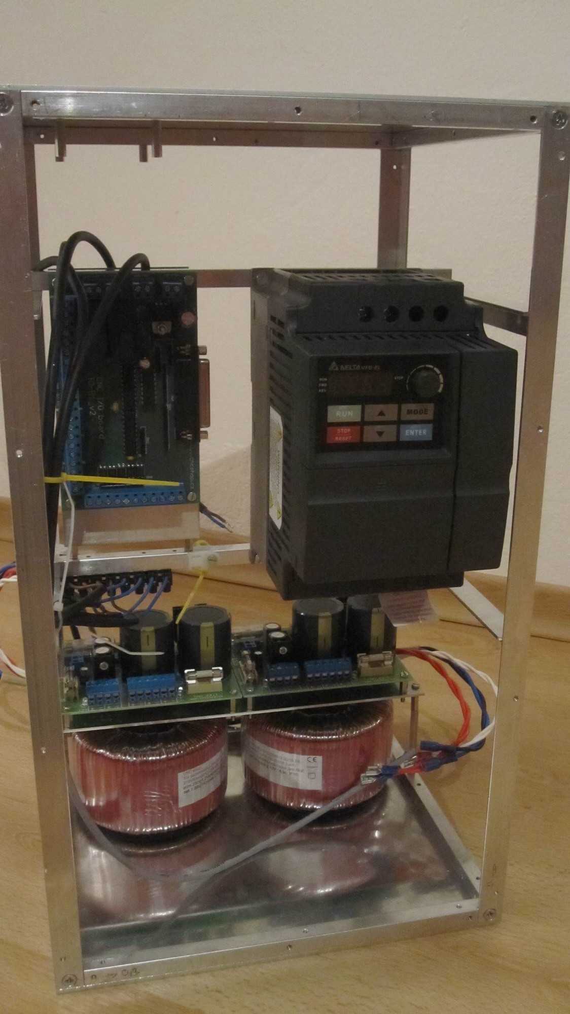Postup prací je takový, že prodloužený víkend byl ve znamení vrtání, zahlubování, utahování, povolování.... Dorazily vypálený AL plechy, tak se mohlo pokračovat na elektrobedně. Zapojovat se to bude až to dostane povrchovou úpravu. Podle poznatků z vysoké školy se mají kroutit buď datové nebo silové nikdy ne obojí.
