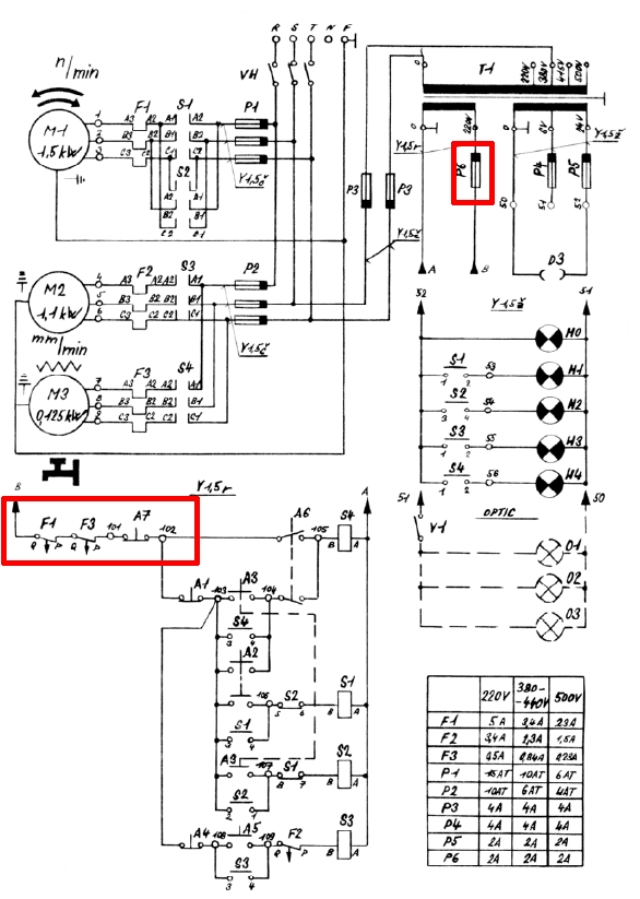 . Musel jsem do dílny přivést 3f elektriku, do teď jsem ji tam nepotřeboval, už zde jsem však narazil na první drobný zádrhel, původní 3f jistič v rozvodné skříňce v baráku byl v háji, šli z něj funkční jen 2 fáze. Tak co, vyměnit jistič a můžu pokračovat. Po zapojení frézky jsem zjistil že asi převoz nepřežila jedna keramická pojistka, taky jsem ji vyměnil a myslel si že už budu frézovat, omyl. Frézka pořád neběží, pokud na ovládacím panelu zmáčknu tlačítko pro zapnutí motoru posuvů (případně i hlavního motoru) abch si ověřil správné fázování nic se nestane, motor neběží (světelná kontrolka zda je stroj pod proudem krásně svítí). Při zmáčknutí testovacího tlačítka na stykači (jsou zde použity staré V16M) tak se motor posuvů i vřetene krásně točí. Dokázal by mi zde někdo pomoci - nakopnout na co se zaměřit, věřím že to bude jen nějaká blbost