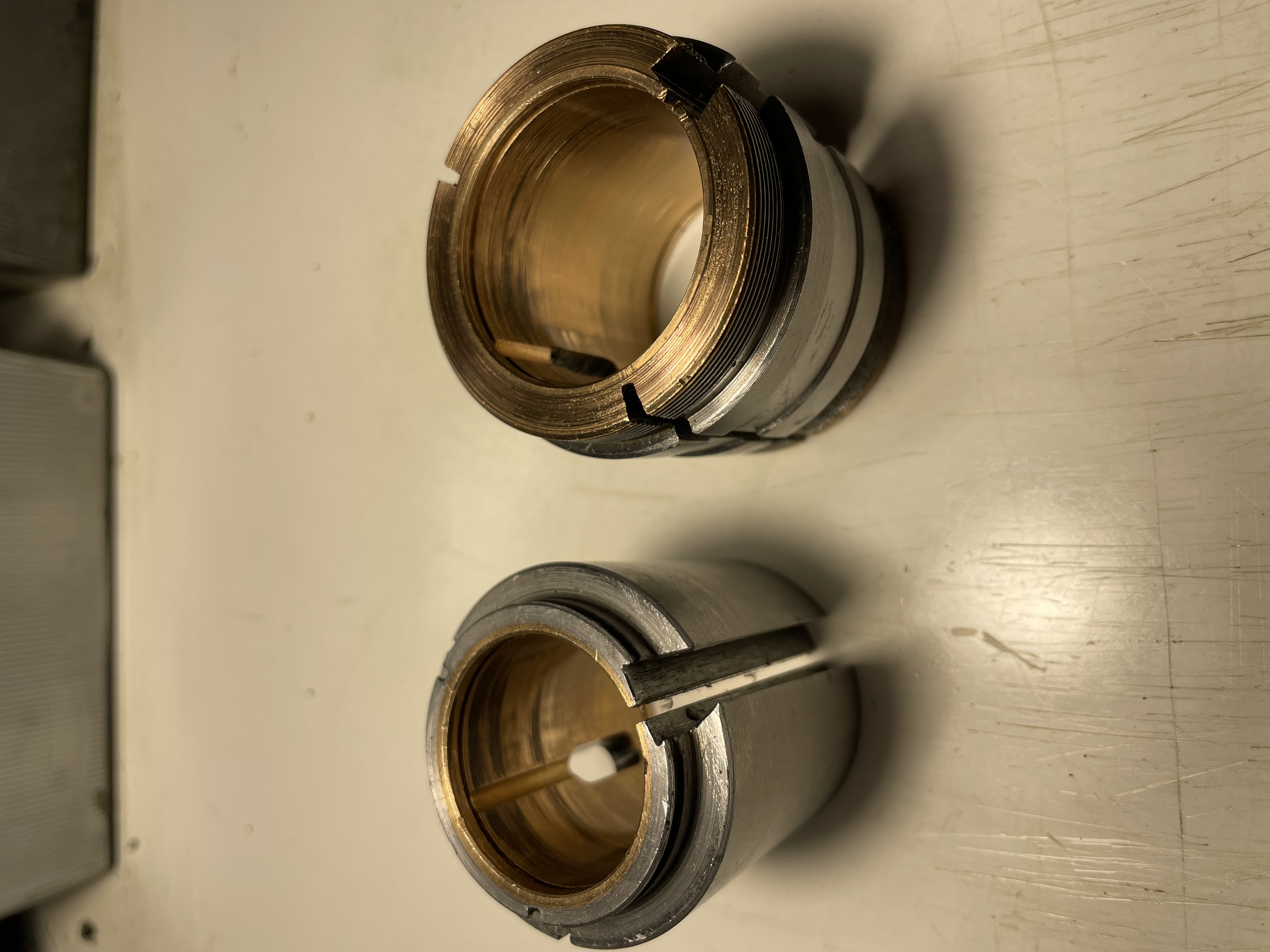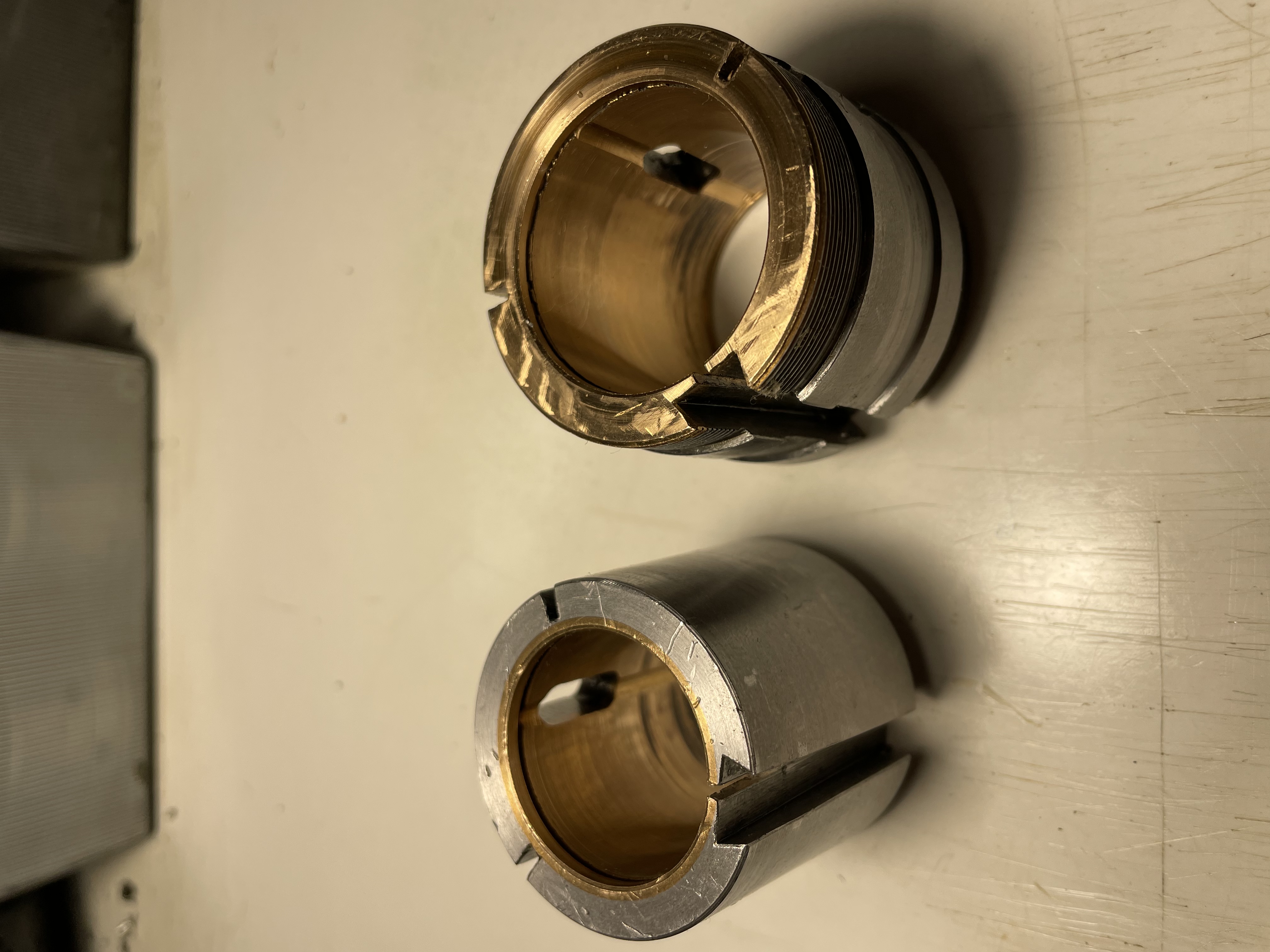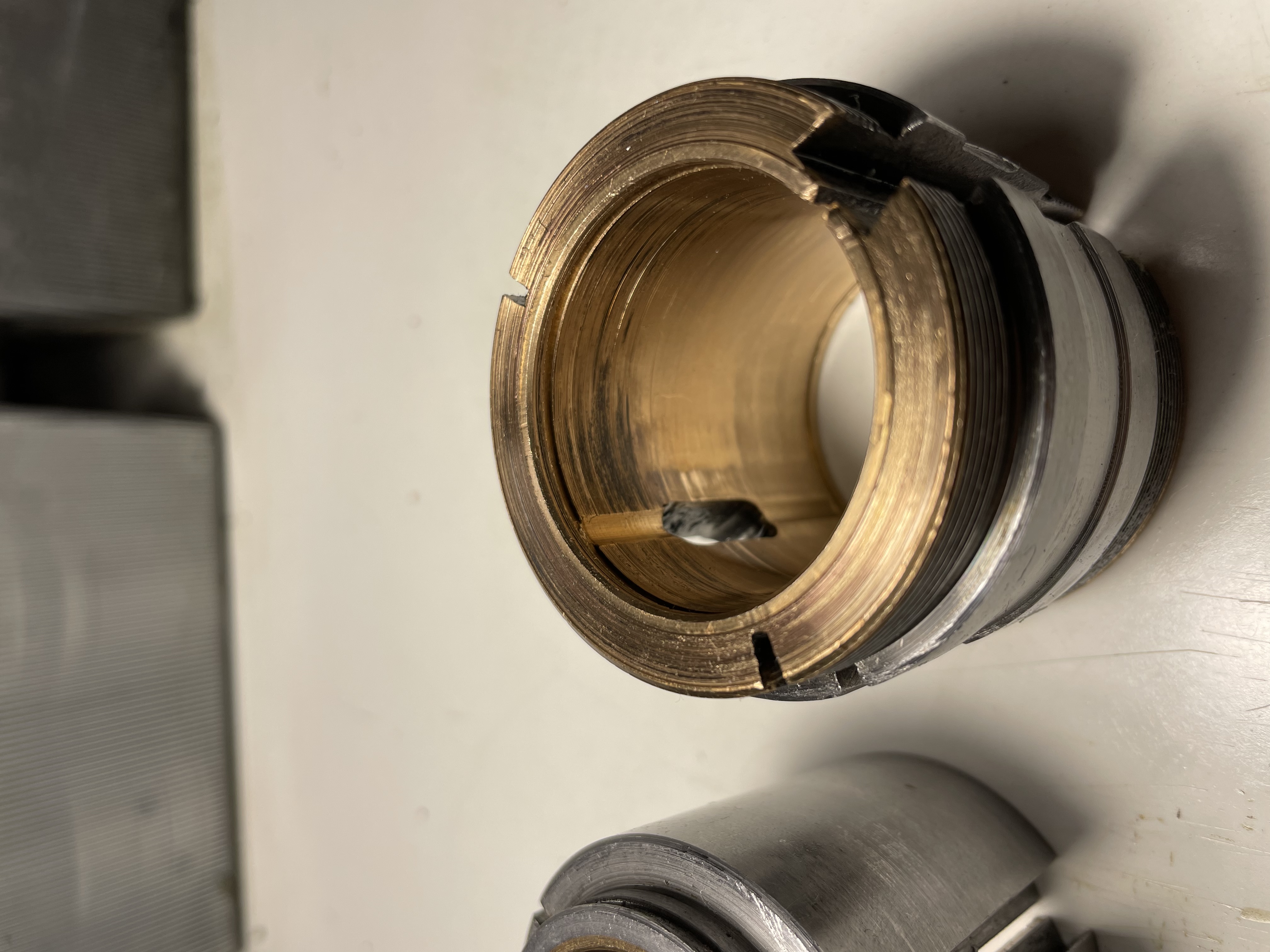 Úplně nejlíp na tom nejsou, musím je pořádně vyčistit - na povrchu je takový černý “nápek”. Prstem však vrypy necítím. Předek předního ložiska ve styku s axiálním nákružkem je v pánu, možná by šel zaškrabat, možná ne… ta vrstva bronzu moc tlustá není