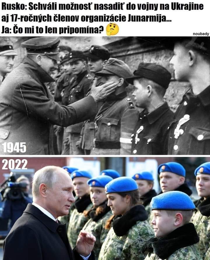 Přesně jak napsal Max je opravdu nezpochybnitelné , že Rusko kopíruje Nacistickou ideologií .Já čuměl když jsem zjistil, že tak jako Hitlerjugen je i v Rusku Junarmia
