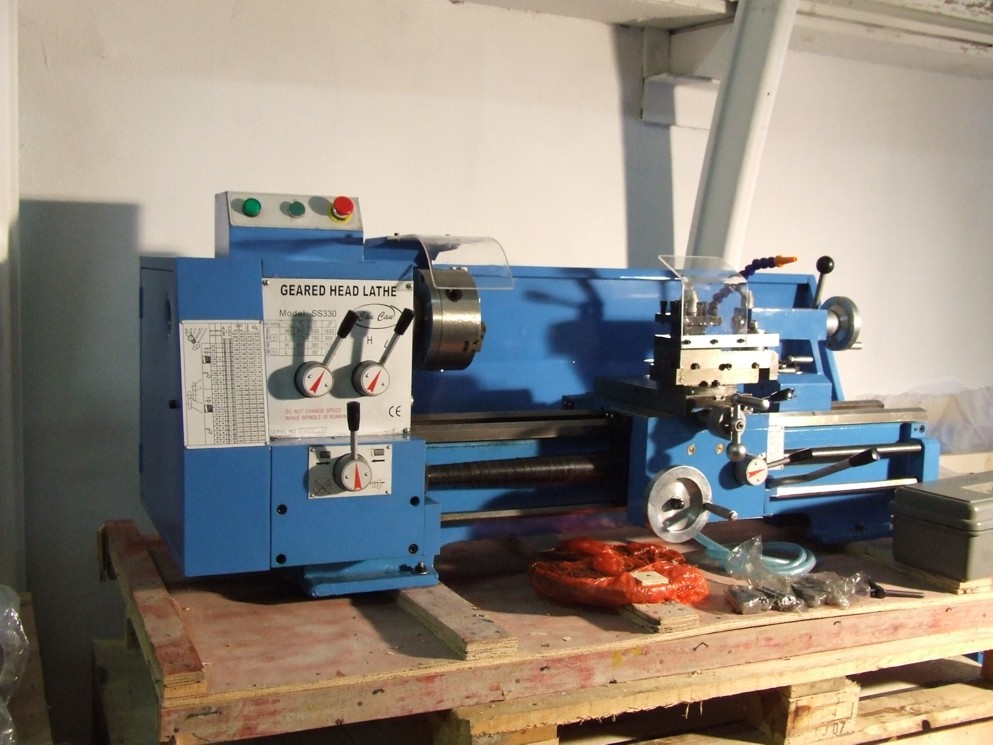 Soustruh mám na stole svařeném ze 40 jeklů a horní deska je z 50 mm pracovní kuchyňské desky, alespoň to tak vypadá. Při montáži jsem musel změnit napájení z 400 na 230V, tedy použít frekvenčák. Bylo to trochu složitější, neb motor nemá klasickou svorkovnici a tal jsem musel měřit. Druhý zádrhel byla absence 230V odbočky na trafu s pomocným napětím pro stykače. Tak jsem dal nové trafo. Příjemným zjištěním bylo, že lože je kalené. :-) Instalace mi tedy trvala asi týden a největší problém bylo hodit ho pak do roviny.