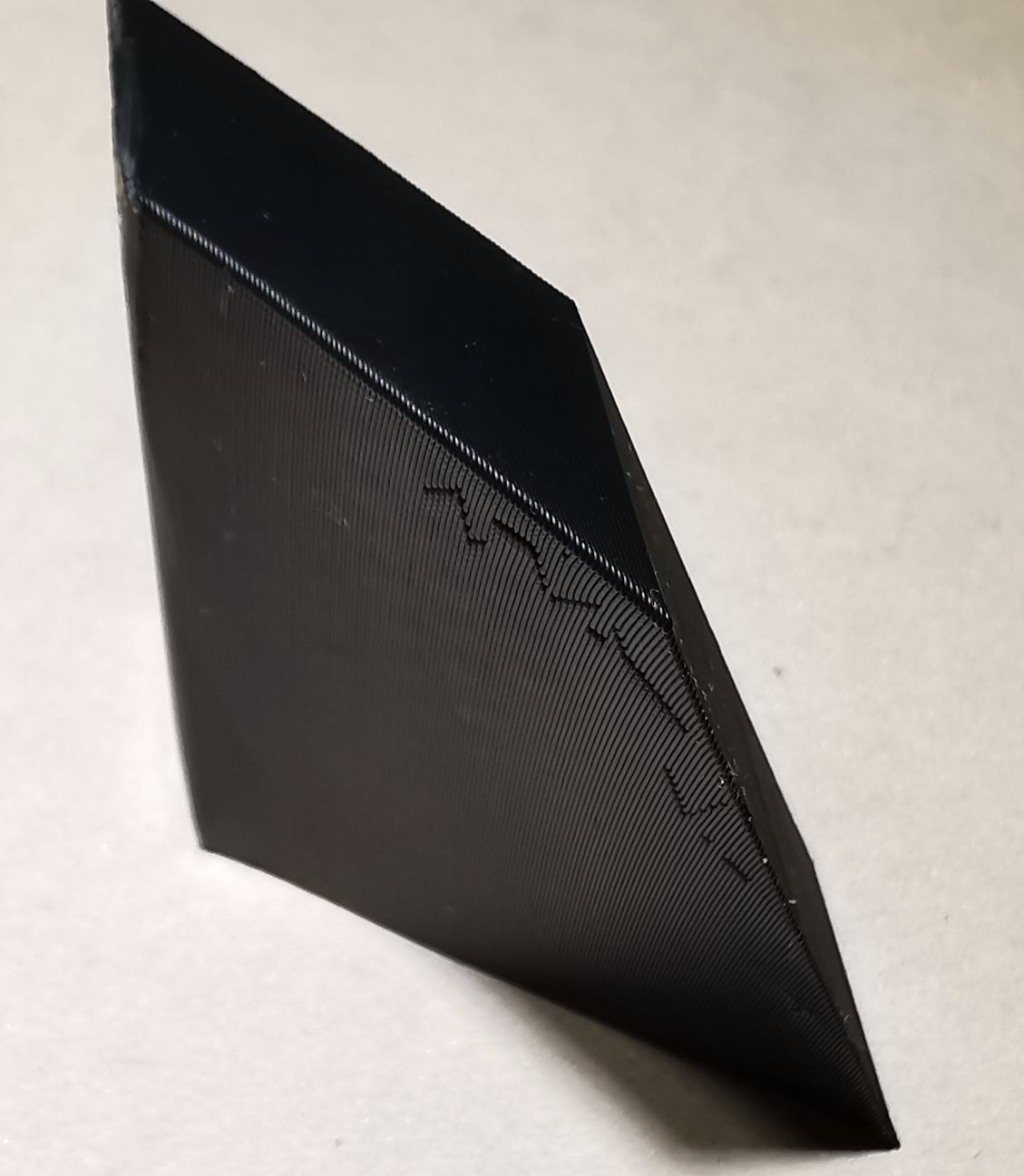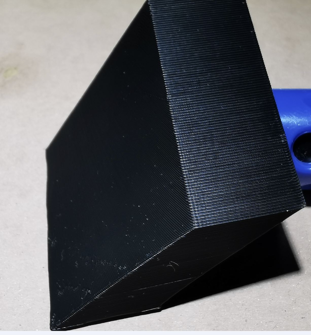 Je tam uhel kolem 30°coz by melo byt podobne jako u toho prusoveho modelu (jen tak zhruba jsem to odmeril) a zadny problem. Chtelo to jen zpomalit tisk a snizit teplotu extruderu.
