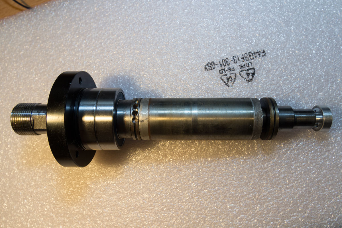 Hřídel je dost hrubě vyrobená, plochy pro ložiska sice broušená, ale žádné zušlechtění neproběhlo (pilník bere všude)