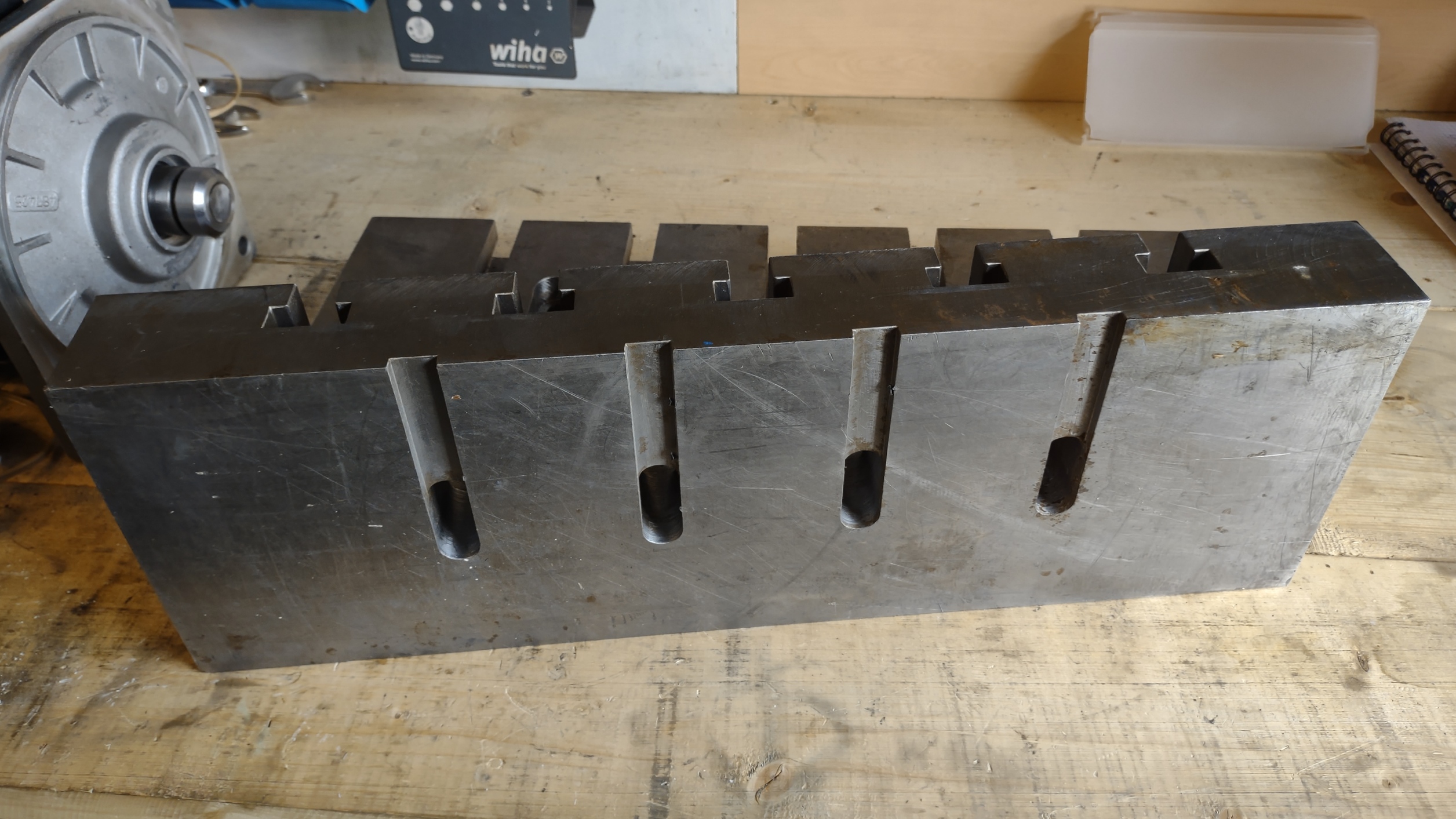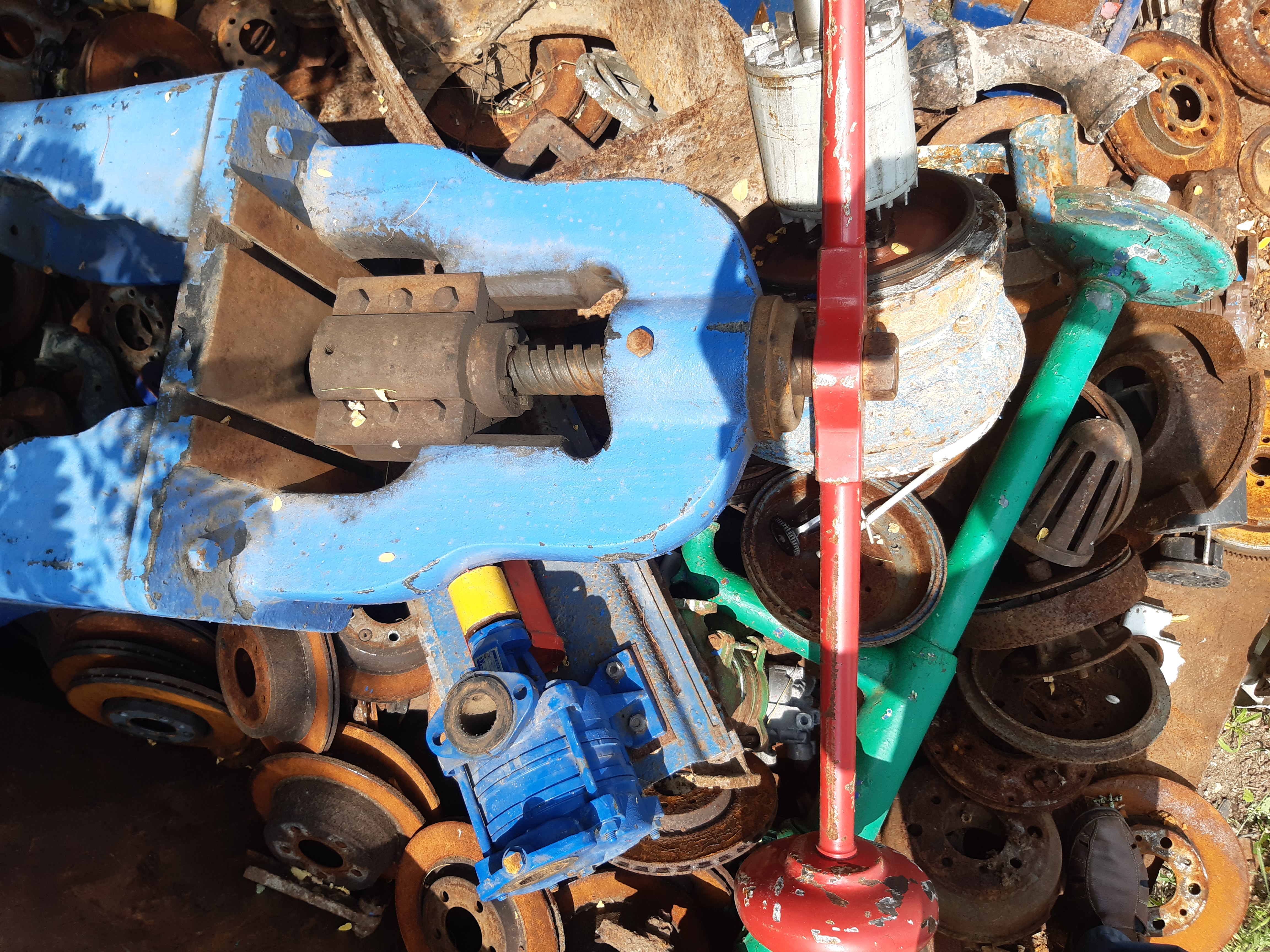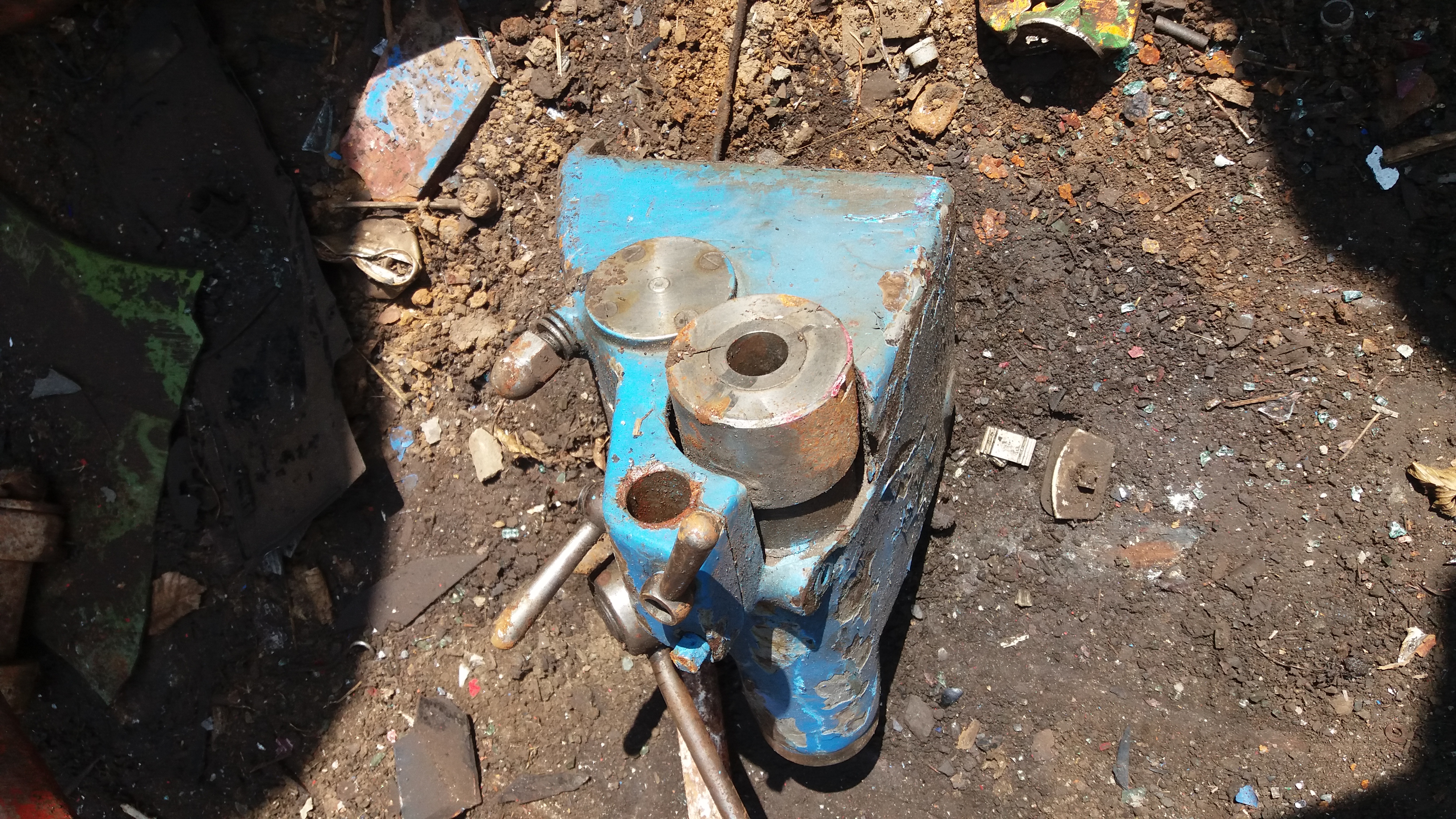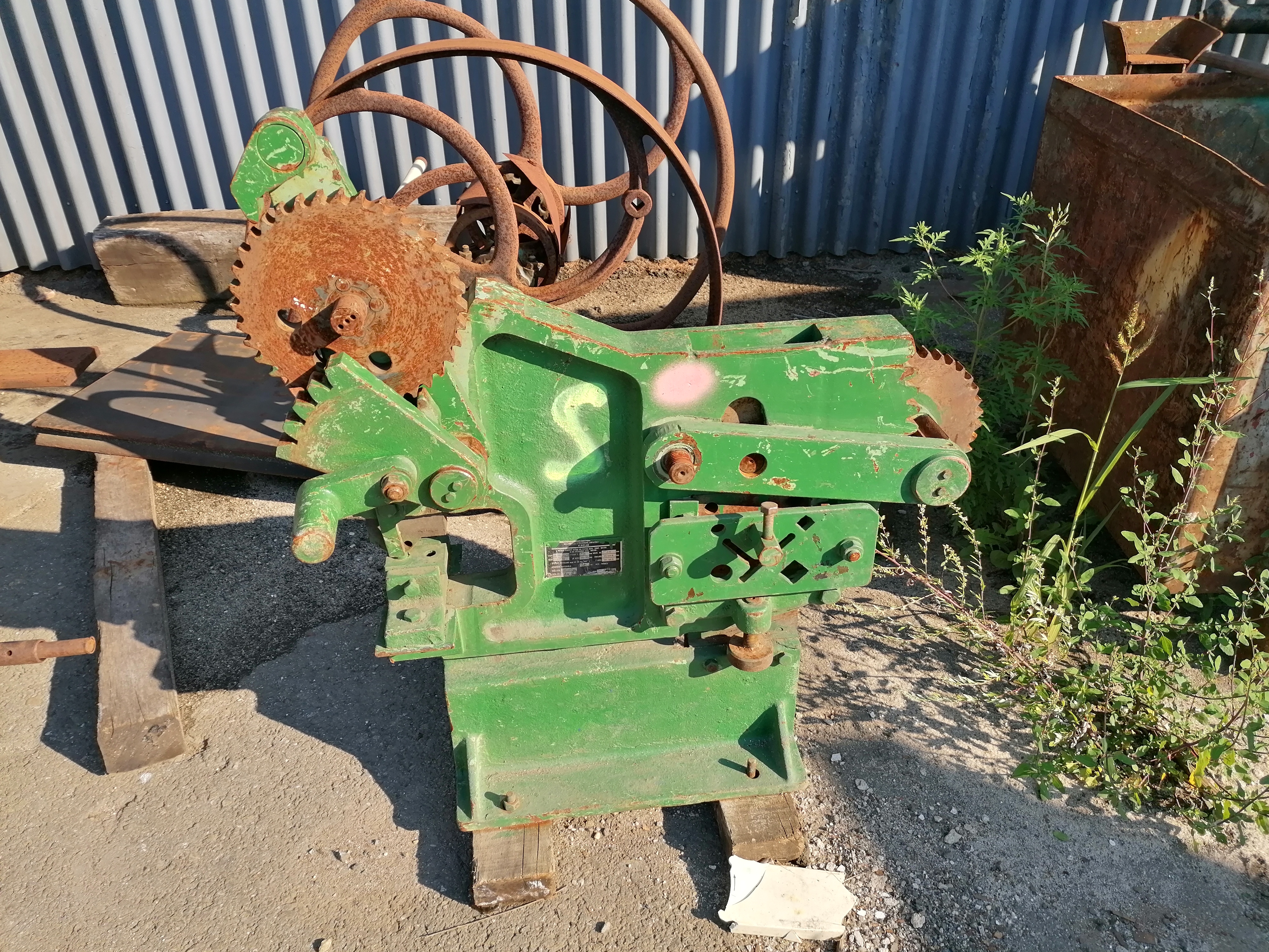 Ten jsem přitáhl ze šrotu. Litina, tuna a půl a hydeaulische. Stůl T-drážky. Tlačí 20 tun. Neměl agregát, tak jsem k tomu šoupnul ten bulharskej, co byl doma. Změřil průměr pístu a spočítal tlak. Podle něj nastavil pojišťovák.