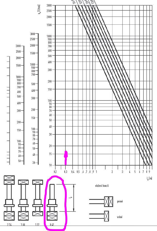 to na ten graf asi blbě koukáš.. letmo uložená 16ka šroub délky 1m má kritické otáčky.. cca 580ot pokud je ten šroub na konci podepřený ložiskem a je to zase 16ka a 1m dlouhá jsou kritické otáčky cca 1600