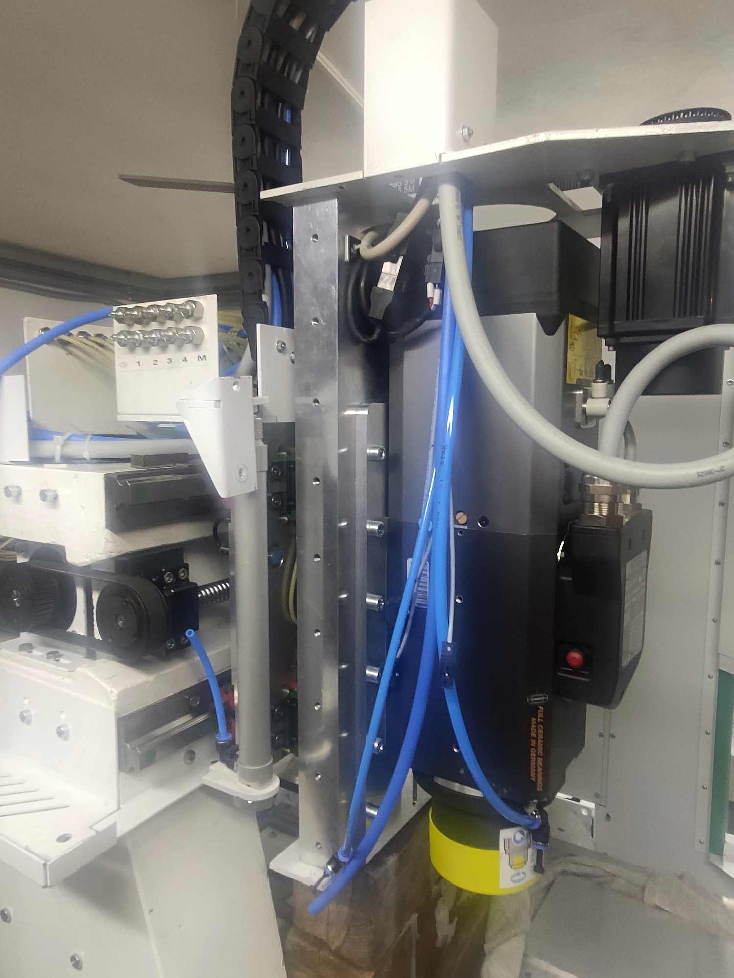nataženo něco hadic a kabelů + osazeno vřeteno