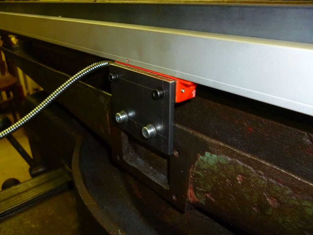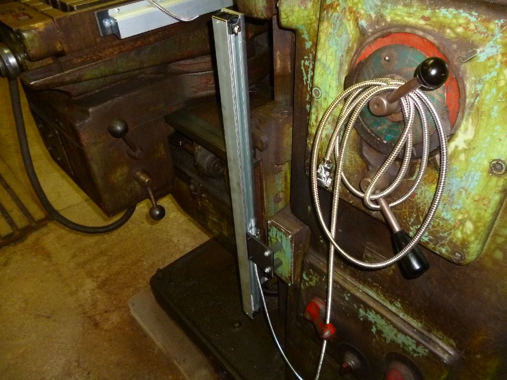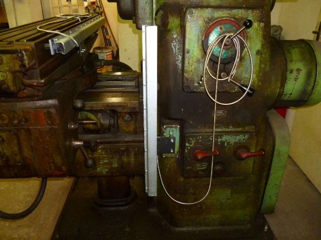 Fréza v Třebíči má pravítka nefunkční a demontovaná, nicméně způsob přidělání (kde a jak) je jasně patrný.