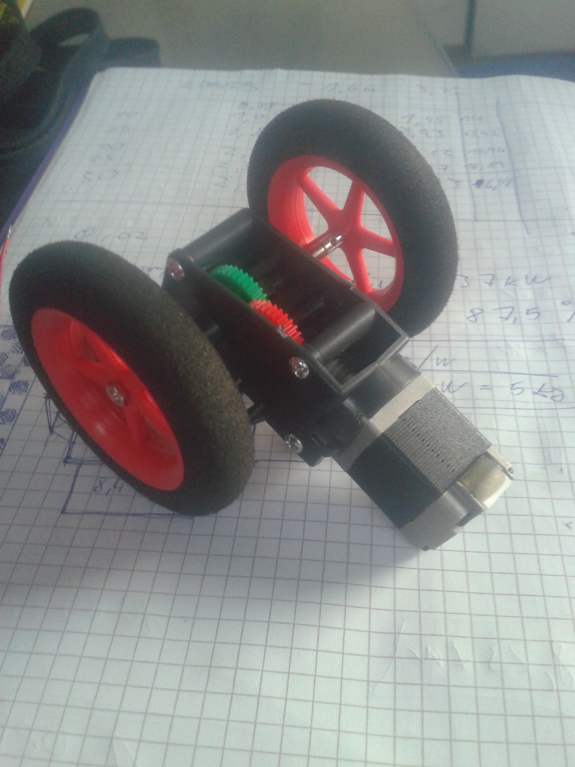 Základ je převodovka , kterou pohání KM. Bohužel je tam dost velký převod (okolo 100ku 1)tak uvidím jak to bude chodit a zda mi to bude stíhat MCU.
