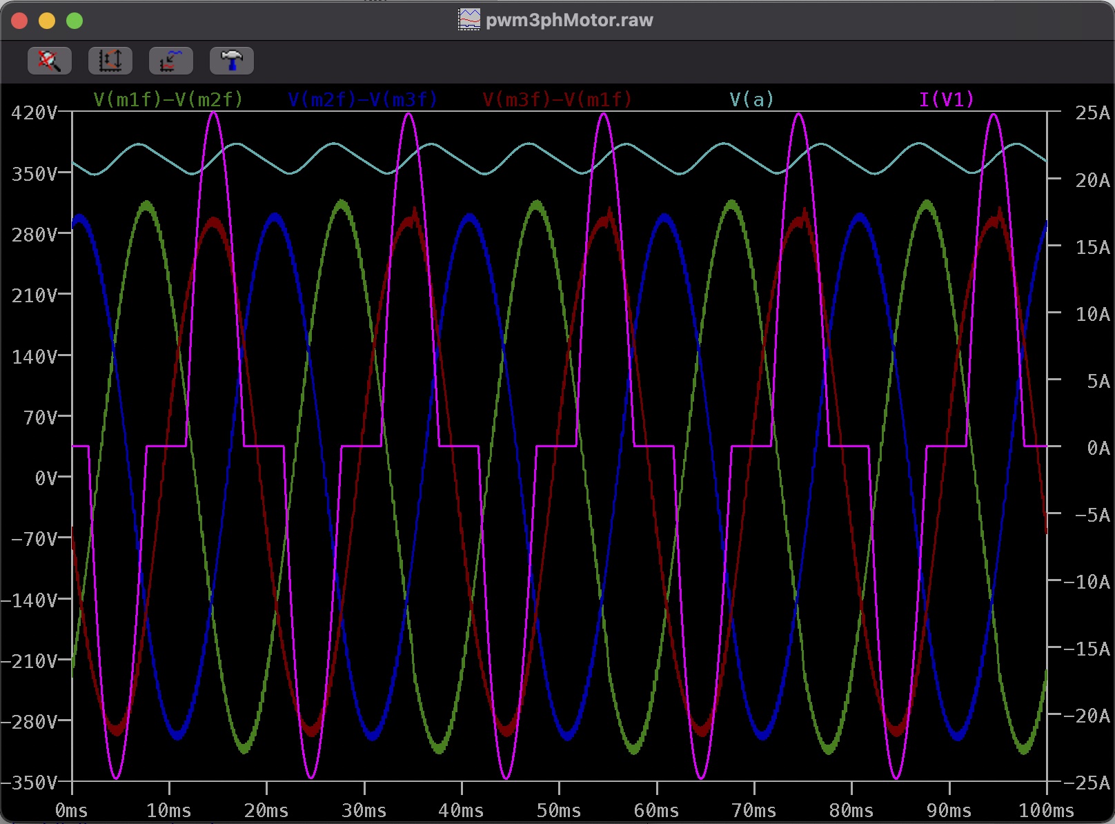 Oompalompa: pokud vím tak základní impuls k té tomíkově simulaci byl to, jestli vůbec je alespoň teoreticky možné tímto způsobem (2x jednocestným usměrňovačem s opačnými polaritami) dosáhnout dostatečné napájecí napětí pro výstupní napětí měniče 3x400V a to je