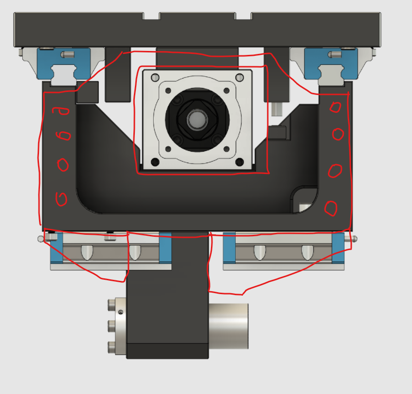 Možná by nebylo od věci celí profil snížit posadit motor skoro až na vodorovnou plochu získáte místo pod vřetenem a ještě se sníží délka obráběné plochy pro žebra?Mrosconi píše: ↑20. 5. 2021, 9:05Smykadlo je HEM300. Žebra jsou šroubovány. Je z tím trochu trápení, protože je to třeba přesně obrobit aby to šlo správně nasadit a plnilo to svůj účel, ale našel jsem svou metodu.