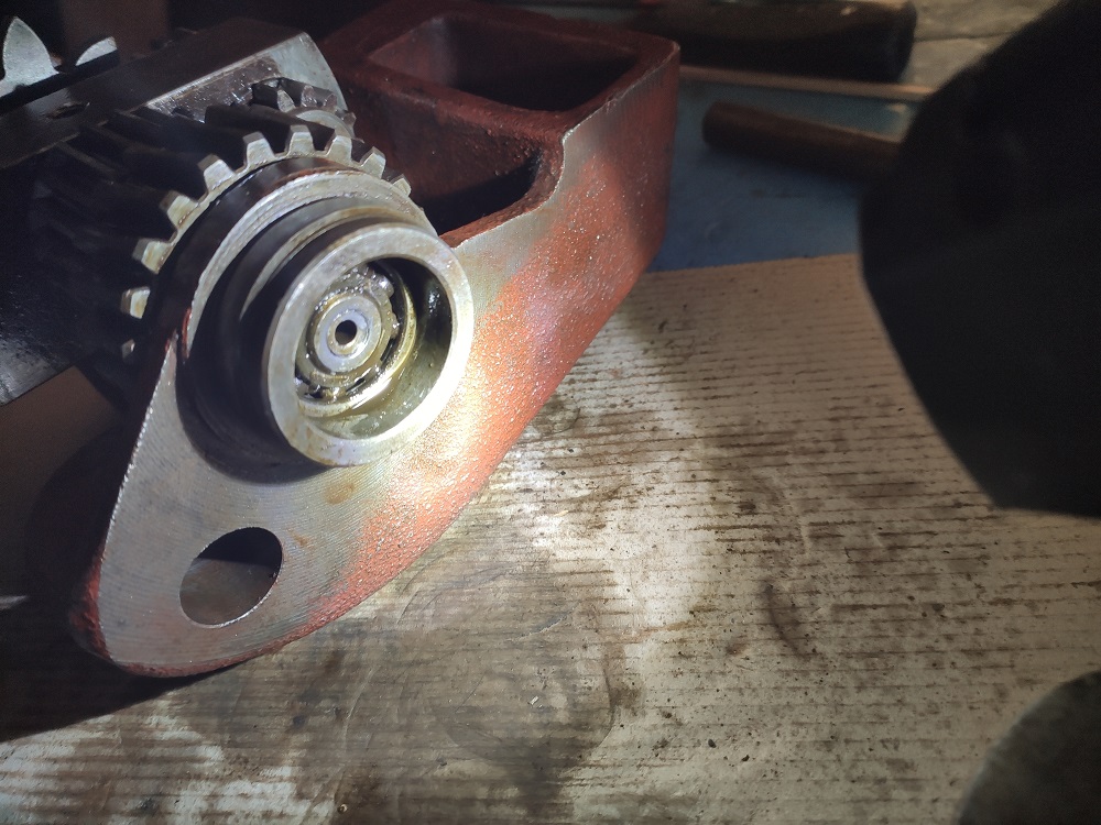 Já to rozebíral, ale je to už dlouho. Matně si vzpomínám, že jsem to vyhodnotil jako nedebilnější součástku celého soustruhu. Rozebral jsem to, až když jsem dostal ven jedno z ložisek a to tak, že jsem na něj navařil podložku se závitovkou a reverzním kladivem ho vyrazil ven. Možná existuje i jiný způsob, ale nebyl čas ptát se kdo je kdo