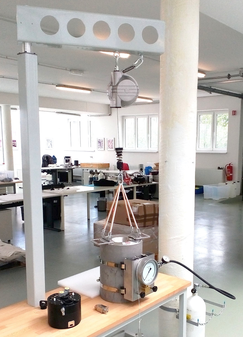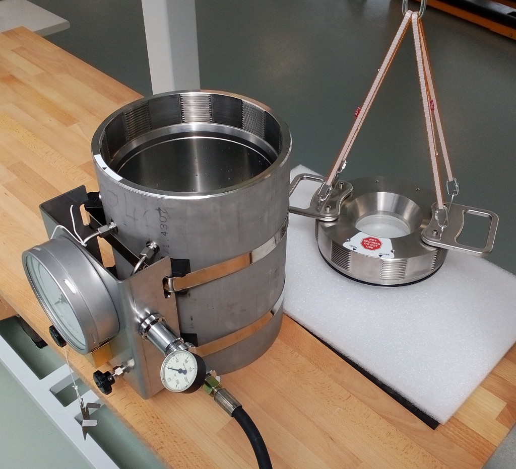 Tlaková zkušební komora (pracovní tlak 6 MPa, zkušební 20 MPa). Ono to přísně vzato ani není bastlení, spíš regulérní výroba zkušebního přípravku na kterém pracovalo několik lidí z firmy + část obrábění a plechařina se taky objednávala mimo firmu. Ale konstrukce je domácí :-)