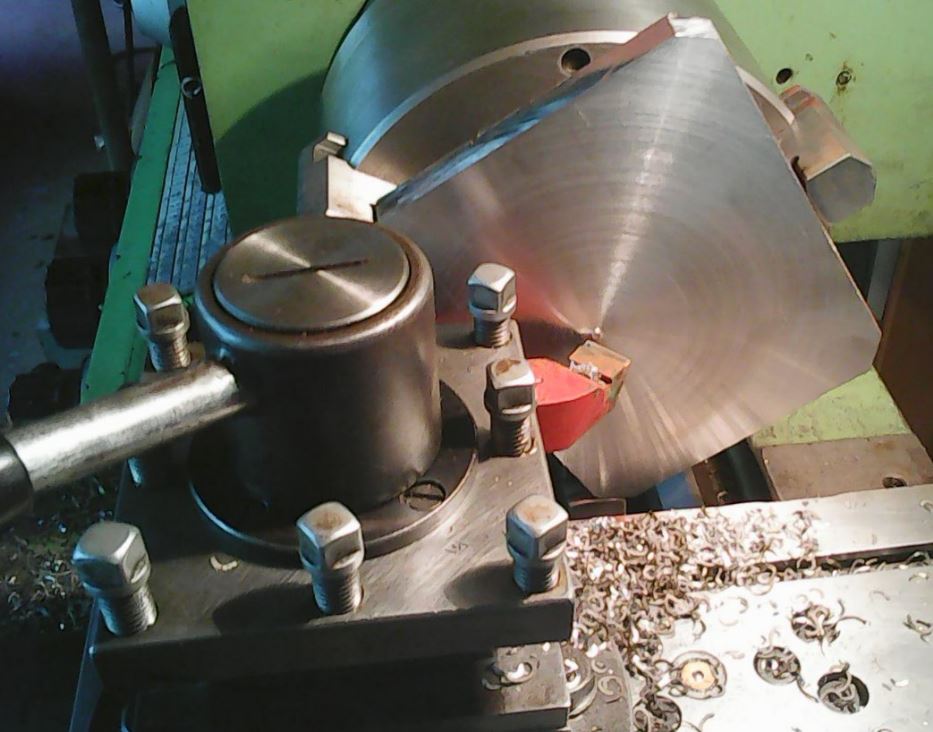 Podle mě má tu kudlu v pořádku a proto jsem se ptal. Touhle kudlou udělá hezčí povrch, víc vydrží špička, líp odvádí špony a nemusí furt přehazovat nože protože ho využije na čelo, obvod i hrany. Navíc to rozložení části sil do podélnýho směru je tady docela žádoucí. Zajištění suportu považuju u větších čel za samozřejmost, ale lepší je opřít suport koněm protože když je zpevňovací šroub na zadním vedení suportu a mašina už má svoje vůle, tak dotažením toho šroubu se odlehčí předek suportu a tuhost je pak v háji.
