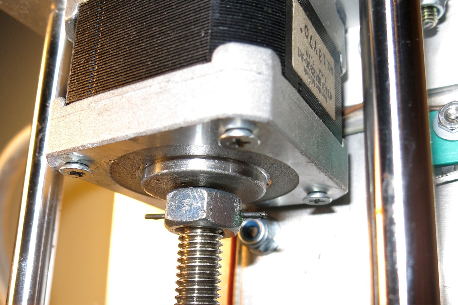 Hehe :) Snažil jsem se to zmáknout co nejméně invazivně. Matku jsem sundal a provrtal na soustruhu, vrtání šroubu probíhalo už na stroji. A již existující vývrt v osičce jsem trefil a to tak akorát přesně/nepřesně, aby se tam kolíček (zlomenej 1mm vrtáček) dal naklepat a pěkně bezvůlově to držel :) Za daných podmínek se za svůj výkon vůbec nestydim :)