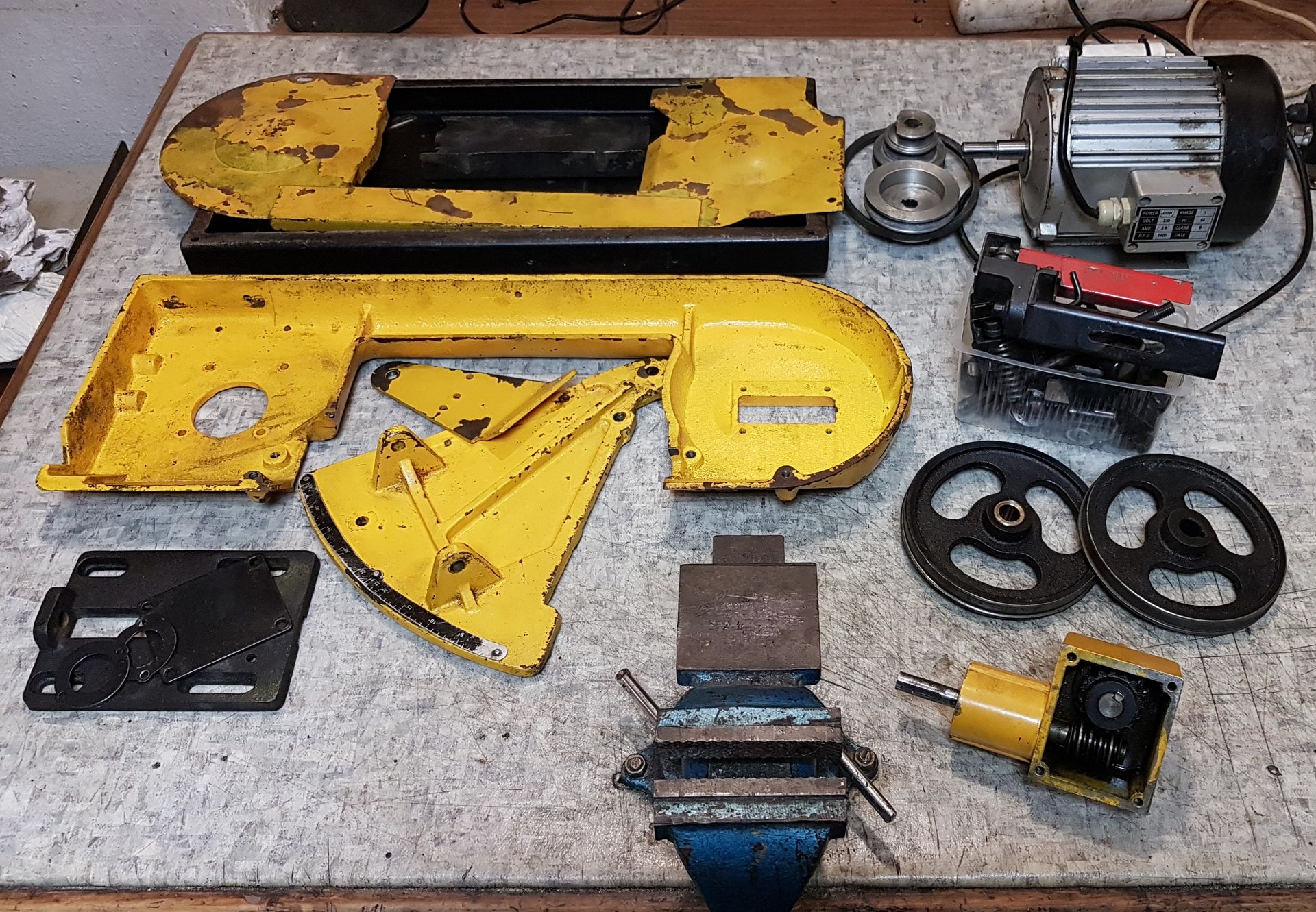 Díky, jj, myslím, že je to ocelolitina (rám, otočný protikus rámu, převodovka a kola). Základna je cca 2mm plech, místně zdvojený, kryt je obyč tenký plech. Hliníkové jsou jen řemenice a motor, plastu je tam ještě méně.