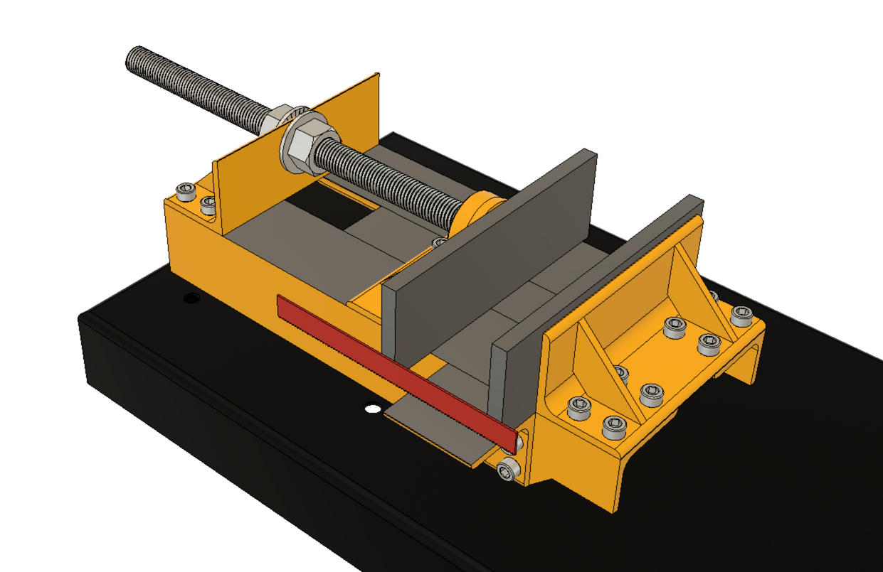 Šroubované z L profilu 45x45x4, vzpěry a matice bych si nechal přibodovat, některé rozměry jsou jen nastřelené a pár drobností chybí (nějaké šroubky, klička, patky pro přidělání k základně, ..). Šroub M16x2 (případně nějaký Tr). Originál svěráku vypadal asi takto: