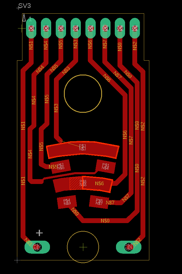 V knihovně Eaglu jsem vytvořil polygon okolo SMD PADu na tom samé potenciálu - bohužel pokud ho aplikuji jako součástku v Board na ni nedokážu přivézt Wire.