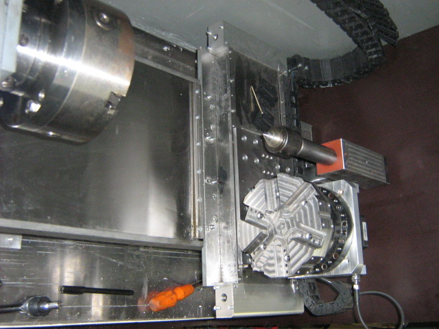Mašinka vyzerá heavyduty. Akurát poloha revolveru mi nepríde celkom ideálna. Asi by som ho dal dozadu a celý sústruh naklonil asi 45° dopredu, zrovna tak, ako to majú komerčné stroje nech sa tam nehromadia špony. Neuvažoval si o takom riešení?