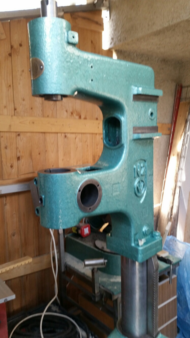 Chlapci, tak já už jsem malinko taky pokročil. Vrtačka celá obroušená, vyčistěná, přeložiskovaná, promazaná, z části nabarvená. Ještě je tam dost práce, ale už to není ta hromada rezaté litiny, kterou jsem přivezl
