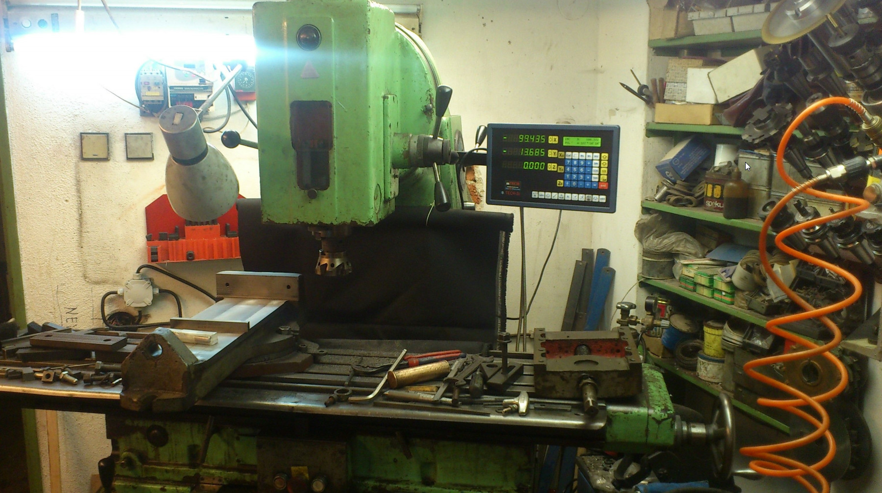 tohle je prostě stará tuhá mašina a ne jak některé dnešní CNC profi stroje - kde, např. při výjezdu z materiálu (na konci obrobku) vám to uskočí o 0,1mm - což mi ukazoval CNC frézař (stál jsem u toho) - mašina byla sice s velkýma rozsahama, ale tuhost mizerná - říkal zlatá stará klasika, tam to "vohulíte" a ani se vám to nehne a měl pravdu