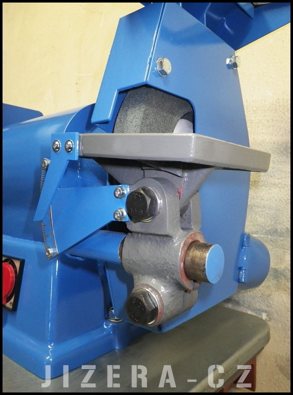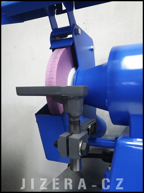 Hned jsem otestoval oba objednané kotouče pro čelní broušení a jedním slovem dokonalost. Zelený korund, zrnitost 80 na hrubo a 240 na doladění ostří. Nože s pájenými SK plátky jako břitva a na výsledném obráběném povrchu velmi pěkný výsledek, dovolím si říct že o kus lepší, než jak byly nože nabroušeny v sadě z výroby. Naklápěcí podpěra dle úhlů je hodně znát a pomáhá.