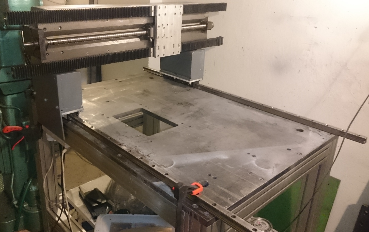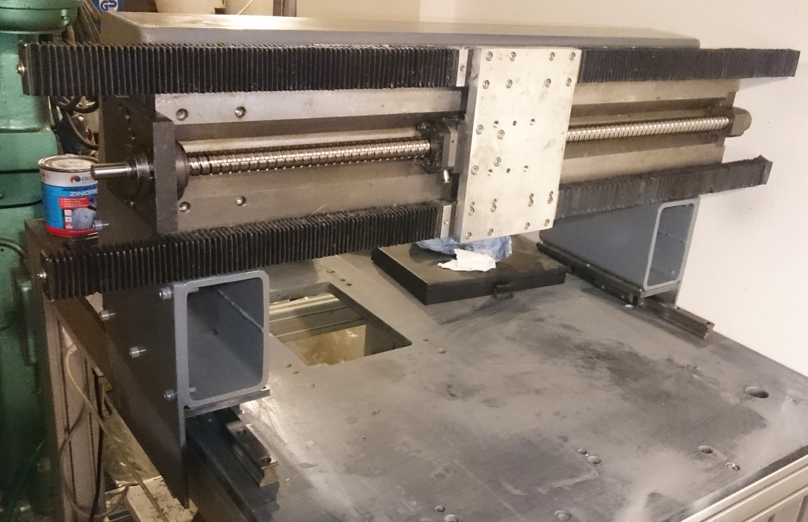K dispozici mám: AL stůl s ocelovou deskou celkem rovnou, Linearni vedeni s aktivním zdvihem 690mm, druhé ocelové vedení (z) se zdvihem 170mm, Rexroth použité vedení 25 - 1000mm, kuličkové šrouby Hwin D20 zdvih5.