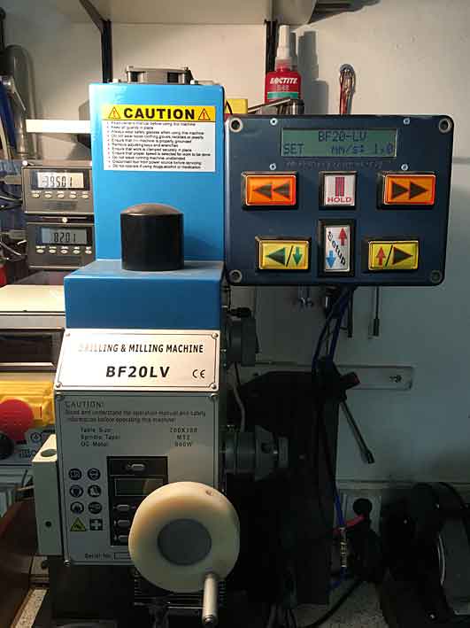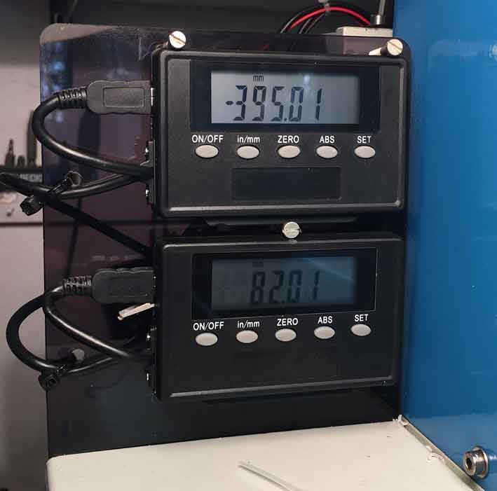 . ALE !!! Výšku jsem mohl odměřovat vestavěným DRO, ale zbytek ne. Tady jsem pochopil jaká je pohodo mít DRO na celé mašině. Zrovna v té době měli v Unimaxu slevu na 600mm odměřování a tak jsem koupil hned dvě, že to narvu i na soustruh. Předpokládal jsem že chlapci udělají i akci na 150mm odměřování, ale nic. Tak jsem minulý týden koupil taky dva kousky a dnes jsem "oDROoval" Xko, sice je delší, ale jednodušší. Kryt je udělaný z profilu 25x25 na sádrokarton a potažený fólií, vydrží to víc než lak a hlavně je to za 10 minut kompletně hotové. Když jsem byl u toho, tak jsem kličku odsadil o 5mm aby tam bylo víc místa.