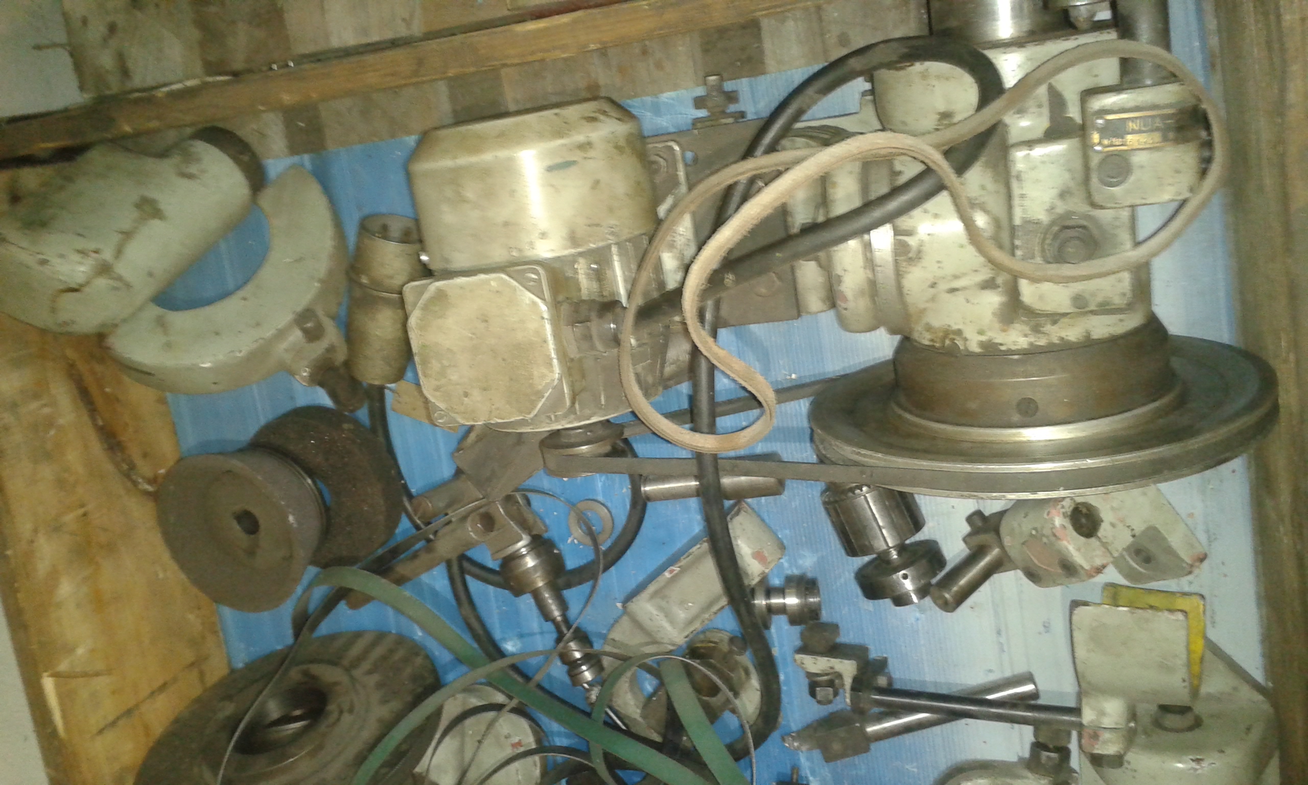 Bruska už je doma, ještě pro ní musím udělat místo. Ještě nafotím příslušenství k pomoci s identifikaci, prozatím bych měl pár otázek ohledně vřeteníku a přírub.