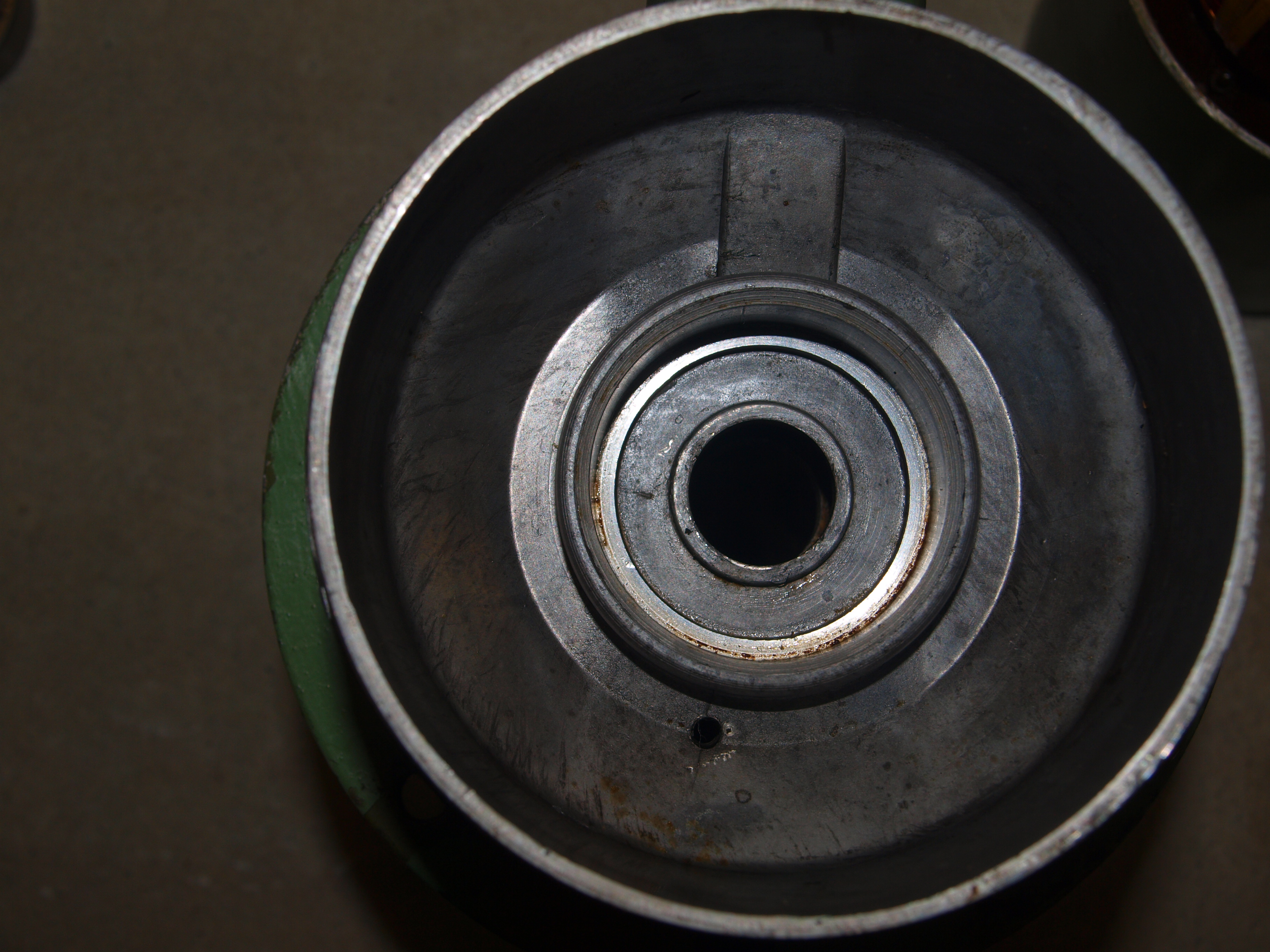 Rozborka mého čerpadla 3COA4-17 provedená dnes. Nejsem takový superman jako Kenybz :D :D , proto mě to trvalo asi hodinu.To moje čerpadlo snad nikdy nebylo potopené v emulzi, ale poslouchat se nedalo. Horní ložisko (6201) bylo OK, ale dolní (6203) to sice na pohled taky dobrý, ale dělalo randál jako hrom. Postup podobný jako to dělal Kenybz. Nejvíce času zabralo sundání vrtulky, musel jsem ji docela fest ohřát,aby se hnula. Vyvrtání většího otvoru do vrtulky je myslím dobrý nápad, protože stávající o průměru cca 5mm je na vyrážení dost málo. Výrobce asi předpokládá, že vrtulka se má demontovat odpáčením, na vrtulce jsou pro to vytvořeny dvě vybrání. Na fotce je to vidět, ale to bych neriskoval, protože plocha, proti které by se mělo páčit je celkem tenká, takže by mohlo hrozit její zborcení.