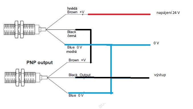 K předchozímu postu: to zapojení indukčáků by fungovalo jen s čidly NC, což asi nemáš. Pro běžnější čidla NO to fungovat nebude, to by se muselo zapojit jinak.