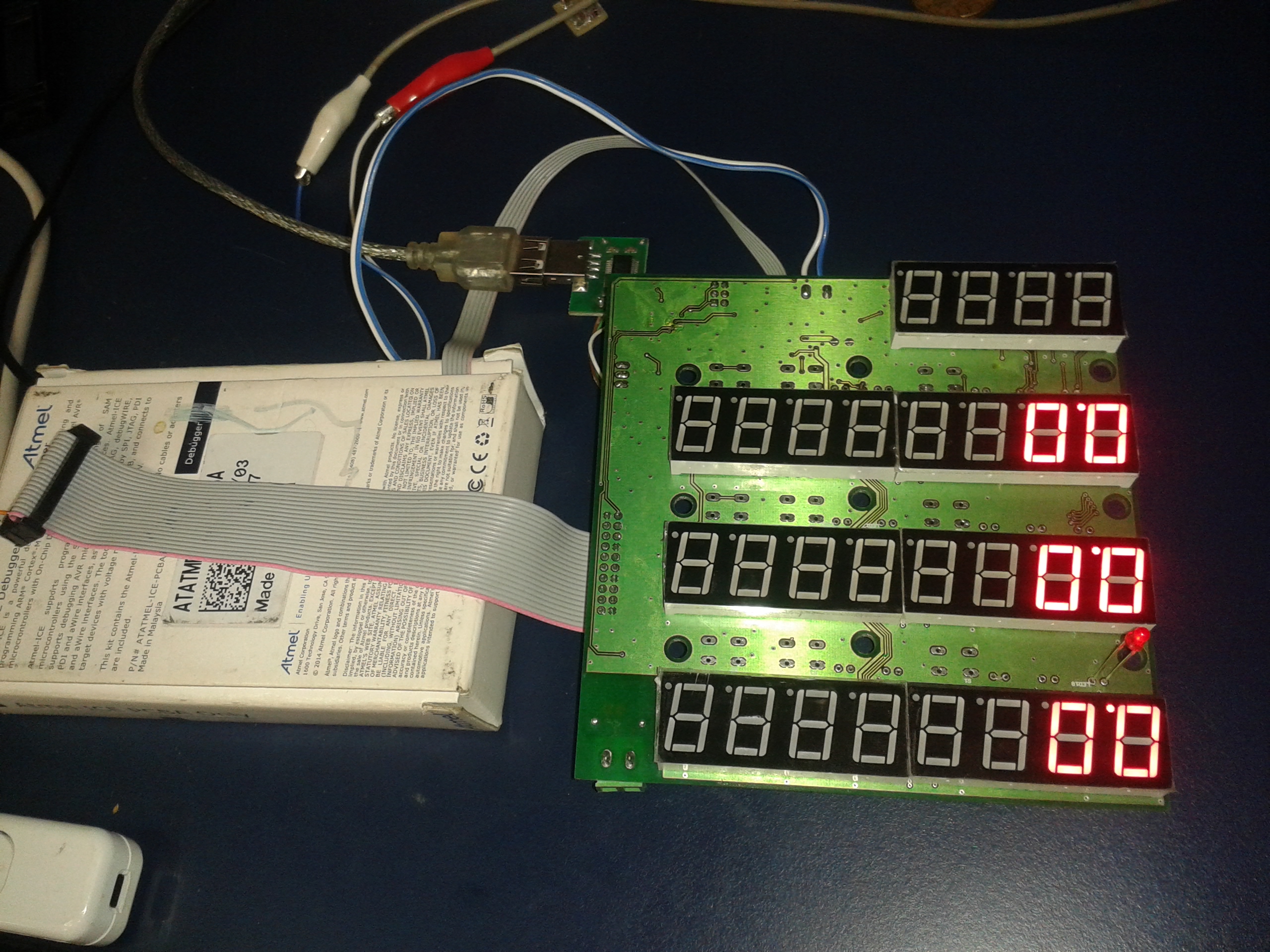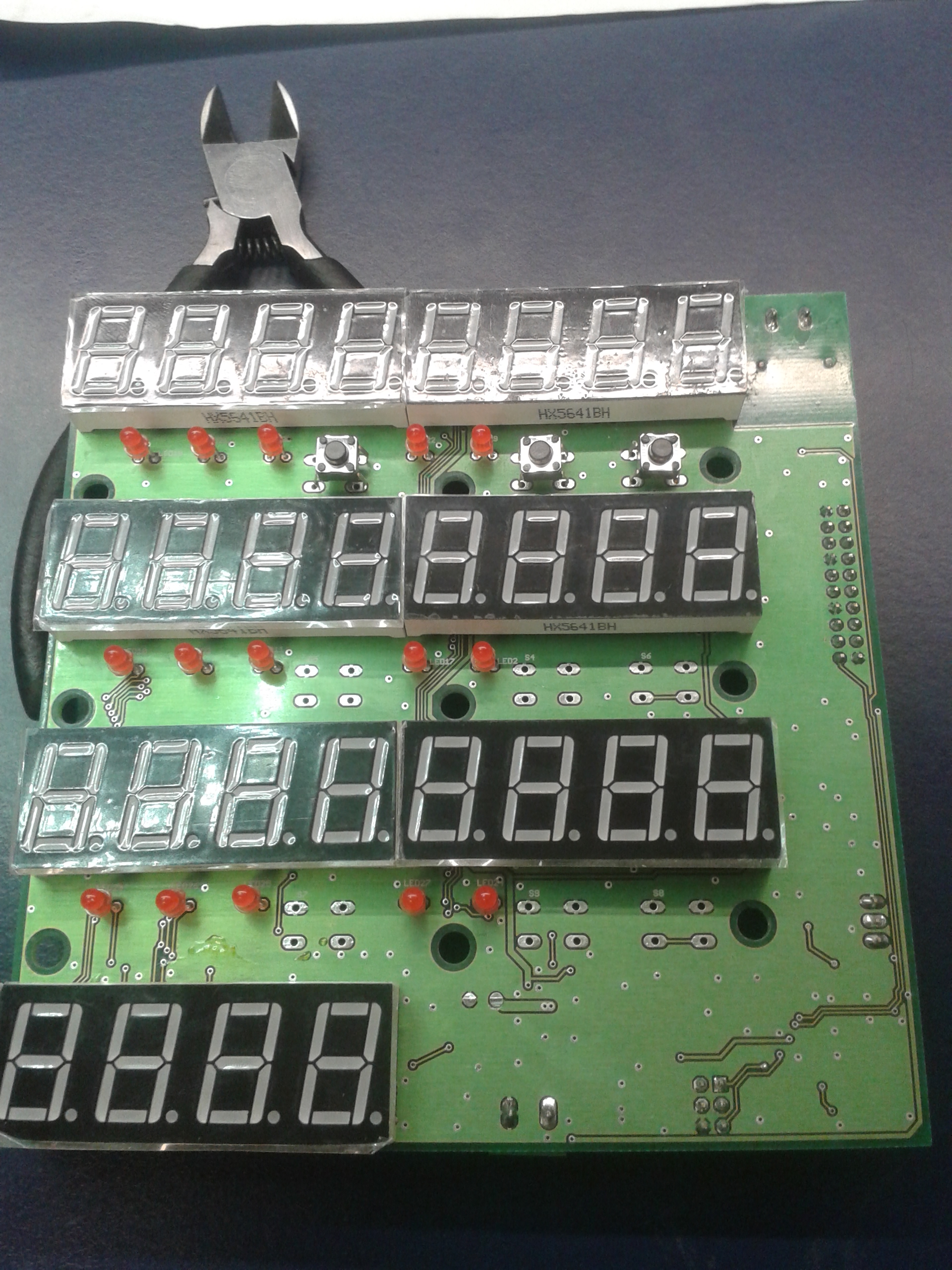 Deska už dostala pěkně za uši, nejdříve se mi podařilo osadit segmentovky se společnou anodou místo segmentů se společnou katodou :D
