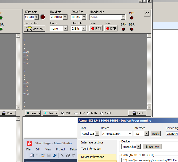 Další problém byl ve zprovoznění quadraturních dekodéru, signál A, B nelze přivést na libovolné piny MCU, přesto že událostní sytém lze nakonfigurovat na libovolné piny, zkrátka je třeba dodržet pořadí na portu a použít například pro signál A pin.0 a pro B pin.1, mě to na desce vyšlo na pin.0 a pin.7. Takhle to prostě nefunguje a nefunguje ani když použijete různé porty pro jeden kanál. příklad, porta.3 a portb.5, taky to nefunguje.