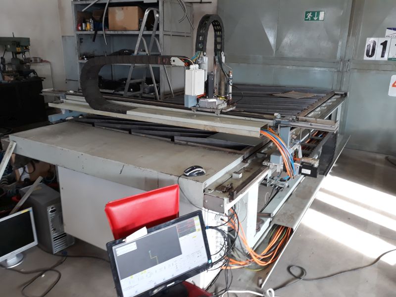 Zatiaľ len sa hýbe samotný stôl, a mám tam simuláciu rezania. Idú mi nejaké makrá na meranie výšky plechu a návraty. V blízkej dobe by mohol byť spravený kompilátor na G-kód a potom budem pokračovať v hraní.