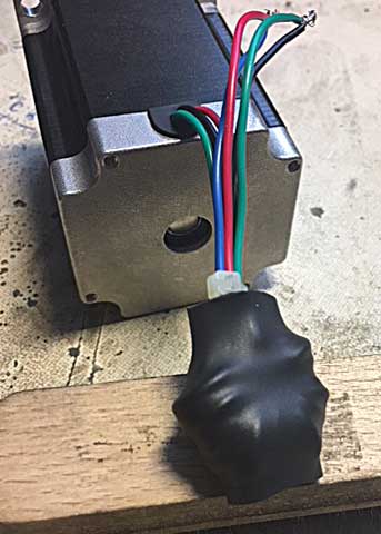 Takhle to vypadá celé. ABS tisk koncovky NEMA23, ocelová uzemněná chránička a průchodka.