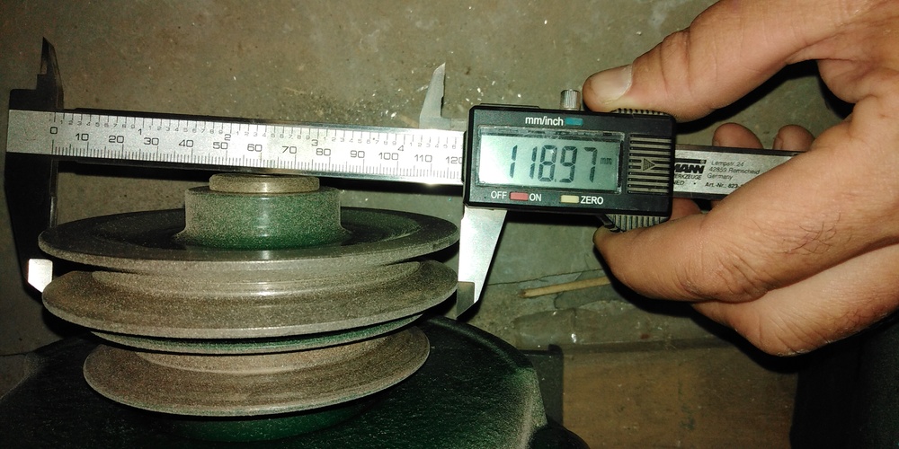 Jen mě mrzí, že tam nemám origo motor. Budu muset motor hnát přes měnič. Když jsme u toho pánové, co tam máte za řemenice? Já tam mám řemenici průměr cca 10 cm na dva řemeny 10x1800 (tuším, že 1800, nevím jistě tu délku). Řemenici se někdo snažil nabastlit a je v ní velká díra, není nijak zajištěná, tak to budu muset předělat