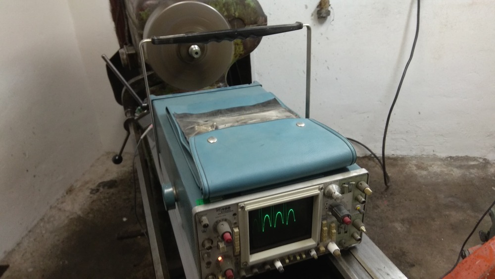 Zdalo sa mi, že ten sústruh má nejaké vysoké otáčky oproti katalógovým údajom. Na najmenšie otáčky má rýchlosť skoro 40rpm (podľa stopiek, 10 otáčok spraví asi za 15 sekúnd). Tak som si povedal, že zmeriam max. otáčky mojim kalibrovaným otáčkomerom