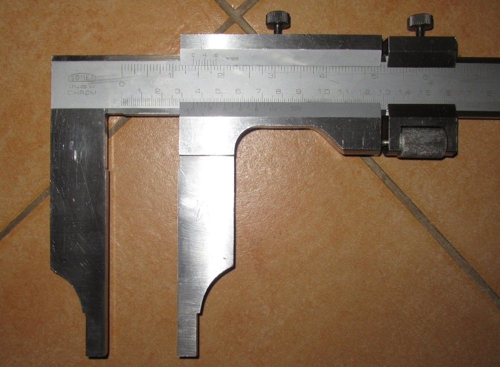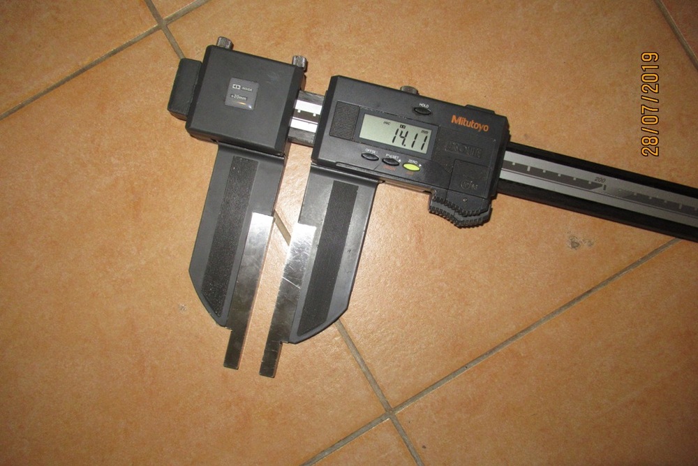 3) nejlepší na konec - kevlarová digitální posuvka Mitutoyo s přestavitelnými oběma čelistmi. K ní jako bonus může případný zájemce dostat ještě torzo stejné posuvky v délce 1500mm - u té je KO jednotka, mechanika čelistí v bídném stavu, ale tyč, až na jeden zákus v měřící dráze je ok a i s poškozením funkční (jezdil jsem přes to 10 minut sem a tam a po návratu na nulu jsem v ní byl, takže kroky neztrácí). Cena 3000 metrovka, 1000 komplet torzo 1500mm (foto zájemci pošlu).