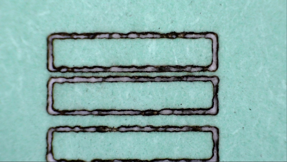 Jak vidno, ani zatím nejpřesnější laserová technologie moc nefunguje. Tady by to chtělo kvalitní speciální materiál optimalizovaný na tuhle vlnovou délku a kompenzovat vypálený prostor. Tohle je reakce na soukromou diskuzi s Mexem, ale ty obrázky by mohly být zajímavé i pro ostatní. Až budu něco žezar a gravírovat COčkam, tak to sem dám tyky.