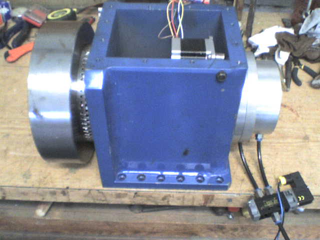 Zřejmě spojujete dva návrhy hlavy v jeden? Já mám hřídel uloženou ve válečkovích ložiskách a přítlak vzduchovím válcem. Systém považuje při startu programu aktuální nástroj za č.1 a pak má definováno kolik kroku motoru je na výměnu nástroje a jakým smětem počítá nástroje motom na konci programu se musíte vrátit na nástroj č.1 aby při startu byl použit správný nástroj.