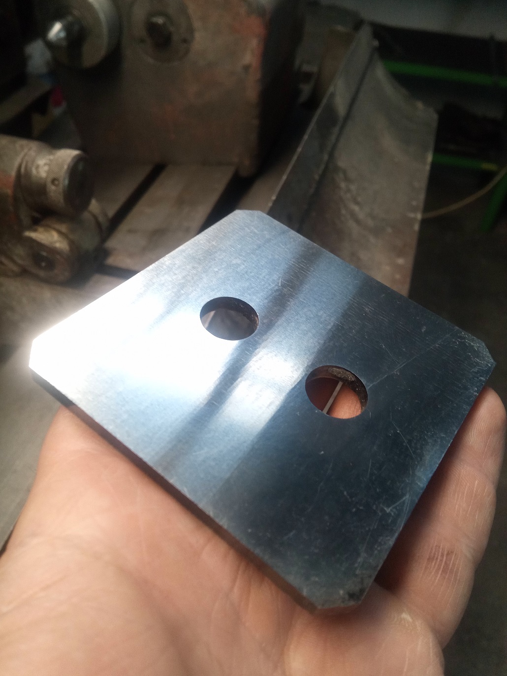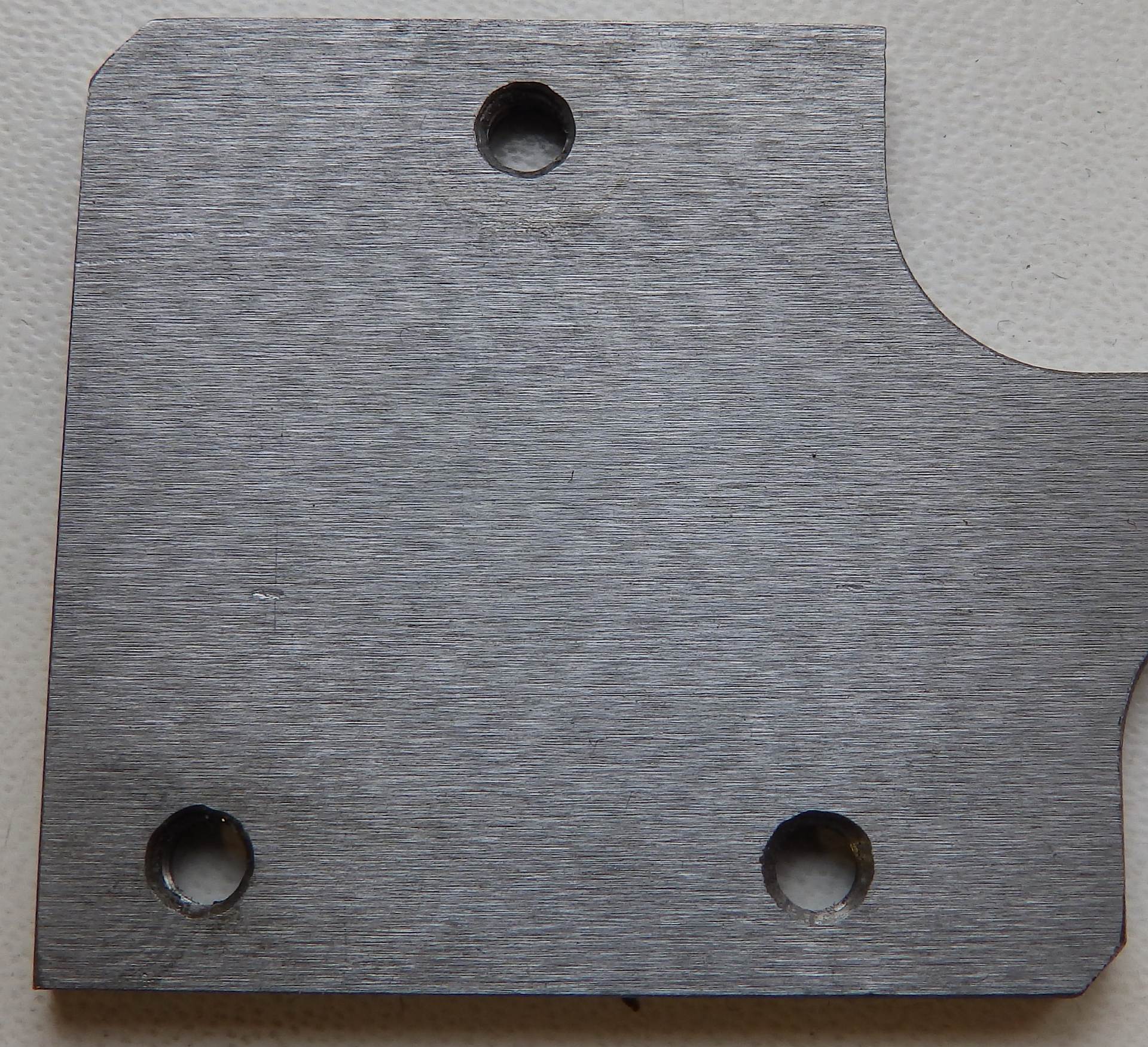Platnička s dvomi dierami je z 11523, brúsená na aglickej brúske Elliott 921 (na ktorej som robil generálku) s vretenom s dvomi pármi axiálno radiálnych ložísk. Opäť je vidno vlnky na povrchu.
