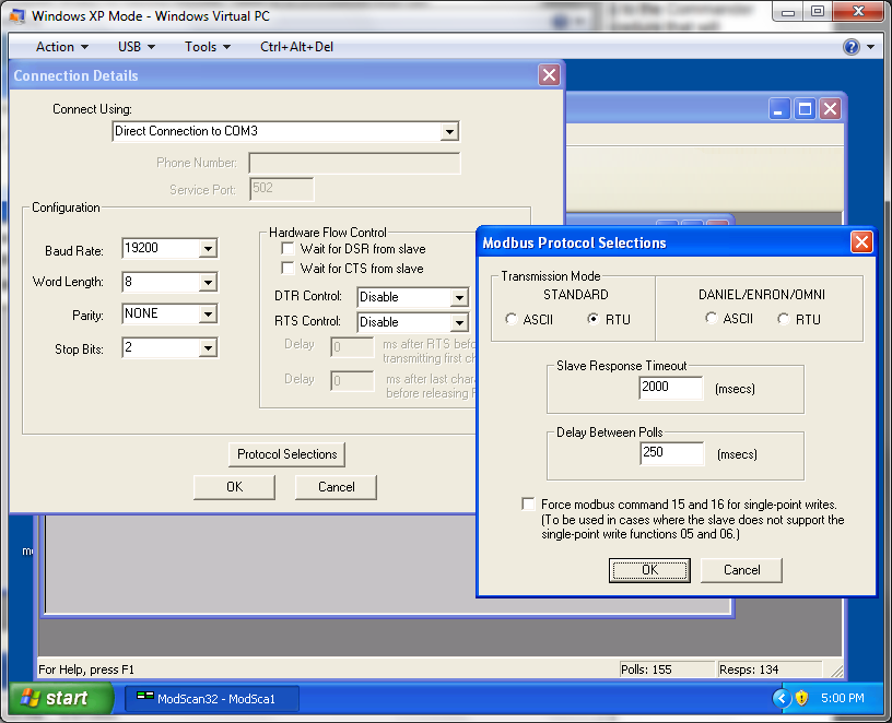 mb2hal nastaven na RTU nebo ASCII, ale nefungovalo ani jedno. Ve Windows fungoval jen ten RTU režim.