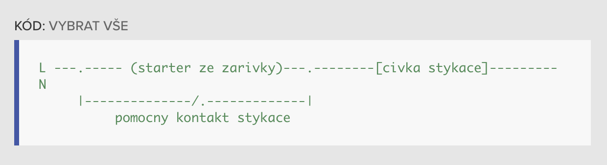L ---.----- (starter ze zarivky)---.--------[civka stykace]--------- N |--------------/.-------------| pomocny kontakt stykace![]()
