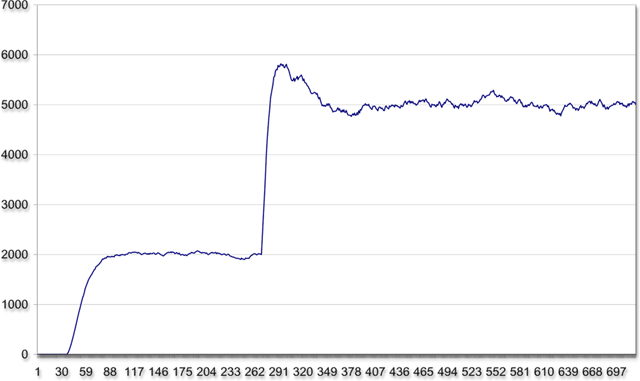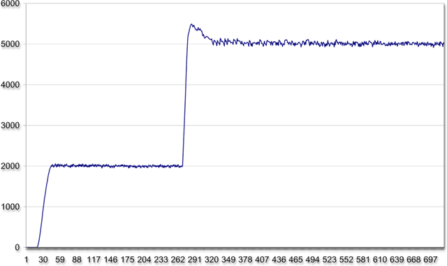 Klasicky pid se nedokazal dobre vyrovnat se setrvacnosti motoru a debilni vlastnosti se zavesit na pole. Protoze asynchoni motor ma strasne malickou oblast, kde dochazi k zlomu a zachytne. Taktez se velmi rychle tento bod meni. Proto ten sum. Nic mene dokazuje, ze je schopen jiz po prvni pulvlne provadet kompenzaci velmi presne. +/- 1,3%