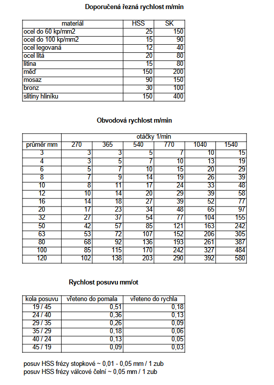 K frézce mám vytištěnou a zalaminovanou tudle tabulku: