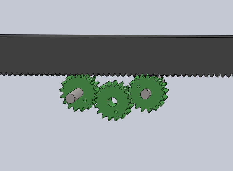 pastorek c. 1 /s delsi hrideli/ je pohanen, prostredni kolo je pritlaceno mezi c. 1 a pastorek c. 2 /s kratsi hrideli/, oba pastorky maji pevne ulozenou hridel /vzdalenost hrideli je pevna/. osa prostredniho kola je trosku dal od hrebene.