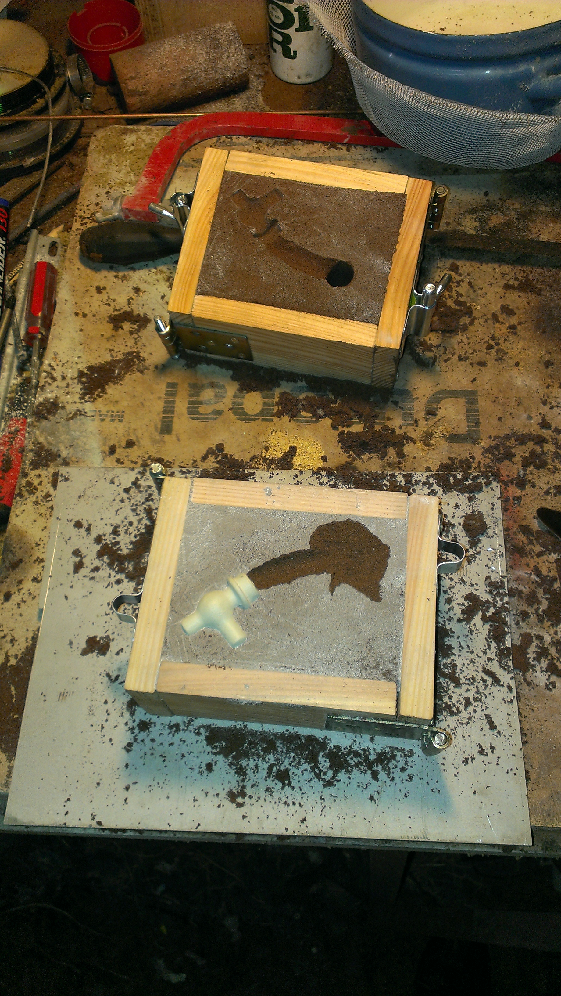 robokop: Chtěl bych to udělat překlápěcí .....tavicí komoru spojovat s formou a po roztavení to jenom otočit. Jak řešit doma formovací směs na ocel zatím nevím. Materiály pro přesné lití jsou v malém špatně dostupné. Asi bych vyzkoušel ten geopolymer. Jenže jeho konzistence je taková zvláštní, bude to chtít laborovat s recepturou. Nebo jako pojivo použít vodní sklo a vytvrzovat to pomocí CO2. To jsem zkoušel a zdá se to nadějné.